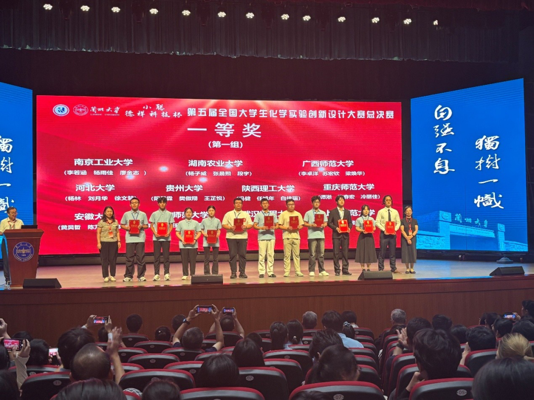 近日,第五届全国大学生化学实验创新设计大赛总决赛在兰州大学举行。本届竞赛共有来自东北、华北、华东、华中、华南、西北、西南七个分赛区482所高校的1364支队伍参加。经过层层选拔和激烈角逐,最终仅有91支团队晋级全国总决赛。由化学与分子工程学院朱森强、刘睿老师精心指导的本科生李若涵、廖金志、杨雨佳组成的参赛团队,凭借扎实的理论基础、创新的实验设计和出色的现场表现,斩获一等奖,获奖作品为“聚光成辉—铃木反应高效制备聚集诱导发射荧光分子及其潜指纹识别应用”。