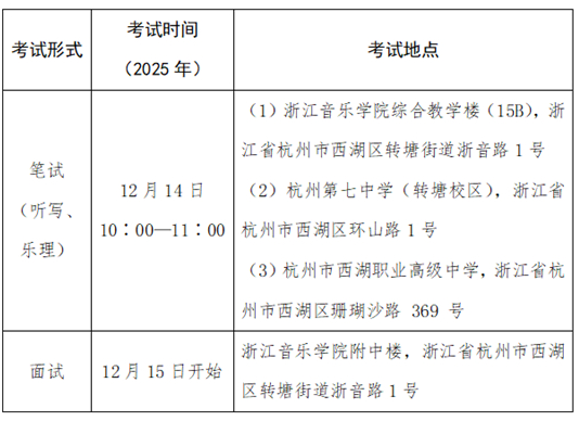 笔试科目乐理、听写采用合卷考试,先考听写再考乐理,总时长60分钟。开考前15分钟(12月14日9点45分)后,禁止迟到考生进入考场;考生不得提前交卷出场。