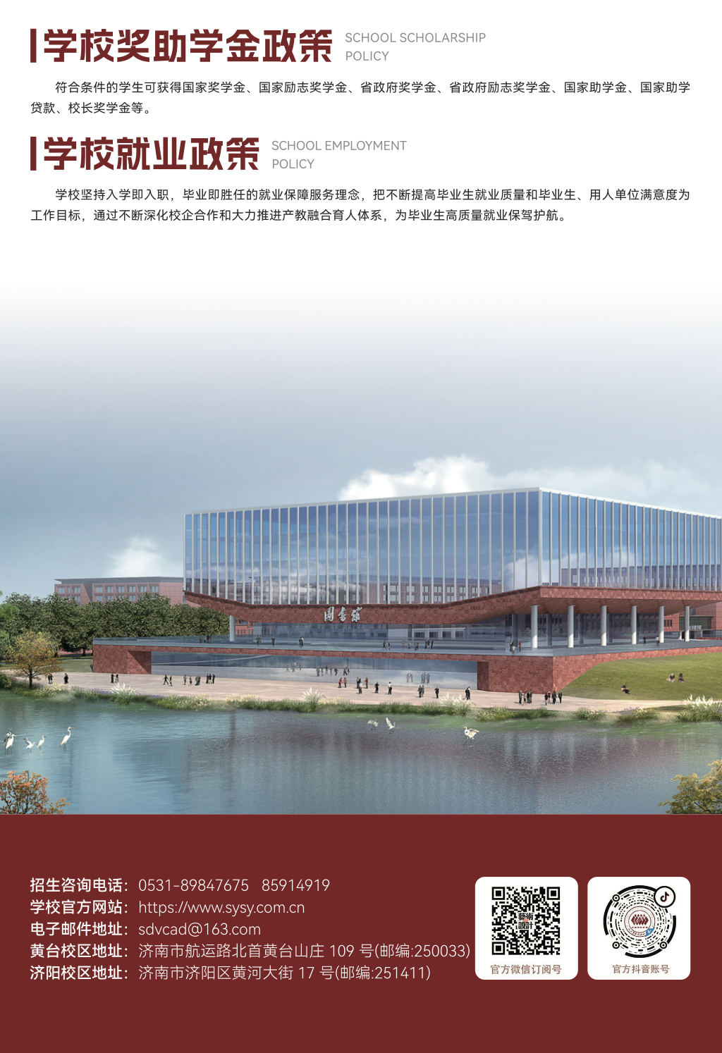 山东艺术设计职业学院位于泉城济南,始建于1985年,前身为中国书画函授大学济南分校。学校现有黄台校区和济阳校区两个校区,黄台校区位于济南市天桥区航运路北首的黄台山上,占地205亩。济阳校区位于济南市济阳区济北开发区,占地880亩,是济南市重点建设项目,全部建成后可满足20000余名师生在校学习和生活,2025年9月份将陆续投入使用。