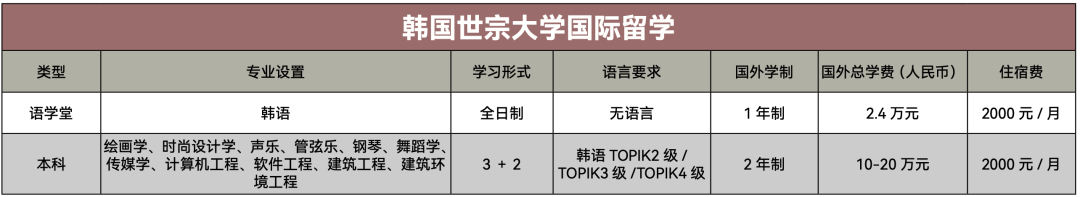 学位课程可选择韩语/英语授课/双语课程。目前,世宗大学开设多个专业,在校本科生与研究生约有20000名。