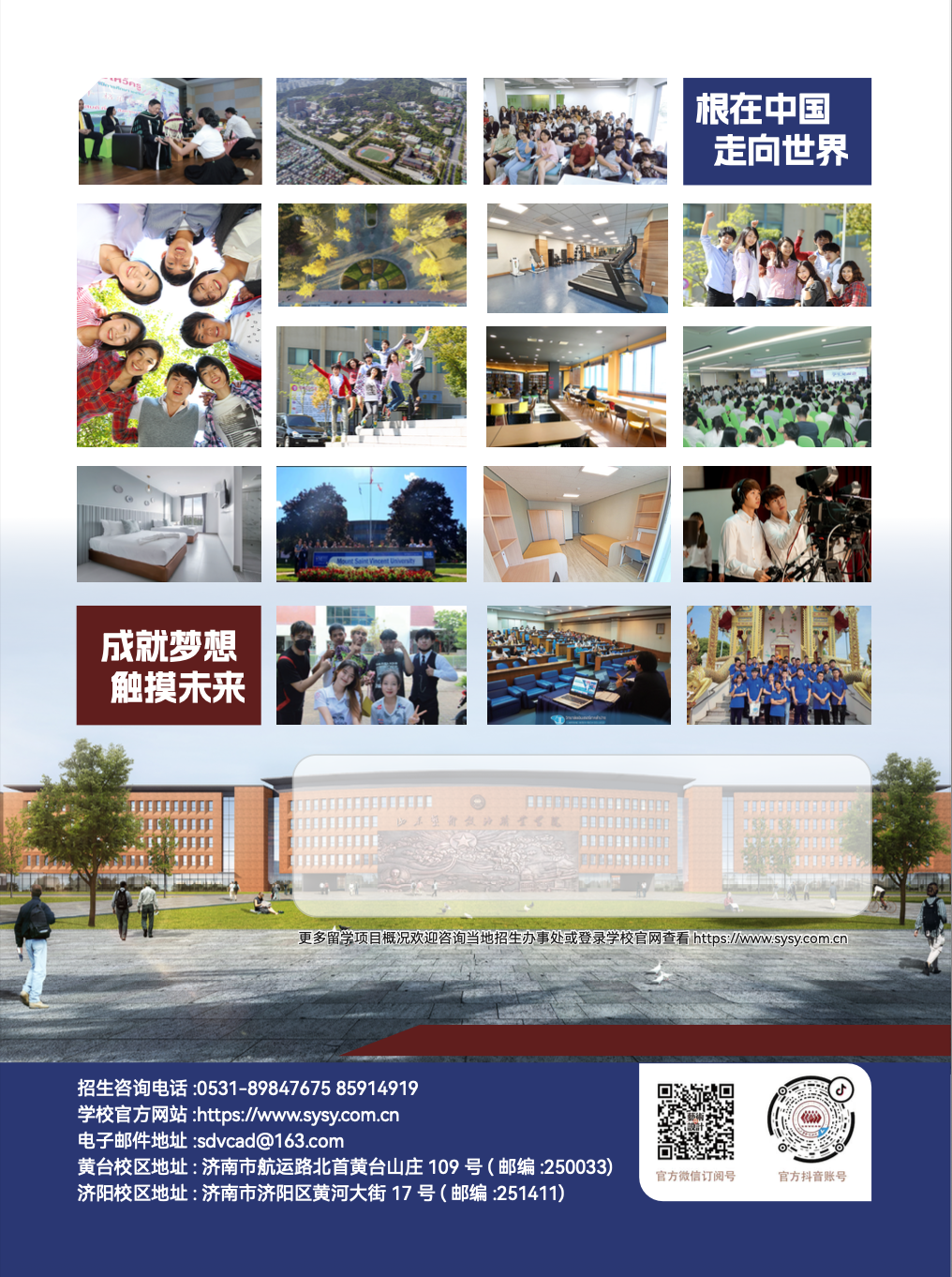 山东艺术设计职业学院留学服务中心是学校对外交流与合作的窗口单位,学校开展留学教育始于 1999 年,在对外加强国际合作交流与合作办学的道路上取得了丰硕成果。学校开设国际课程,面向高中和大学在读生,旨在帮助学生提前适应国际教学方式,增强国际名校申请竞争力。