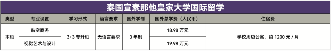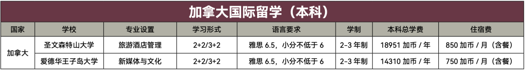 注:学习形式2+2或3+1 招生对象为在校统招大专学生,国内前两年学费标准为19800元/年(不含国内大专费用),国内第三年按照本专业普通学费收取。