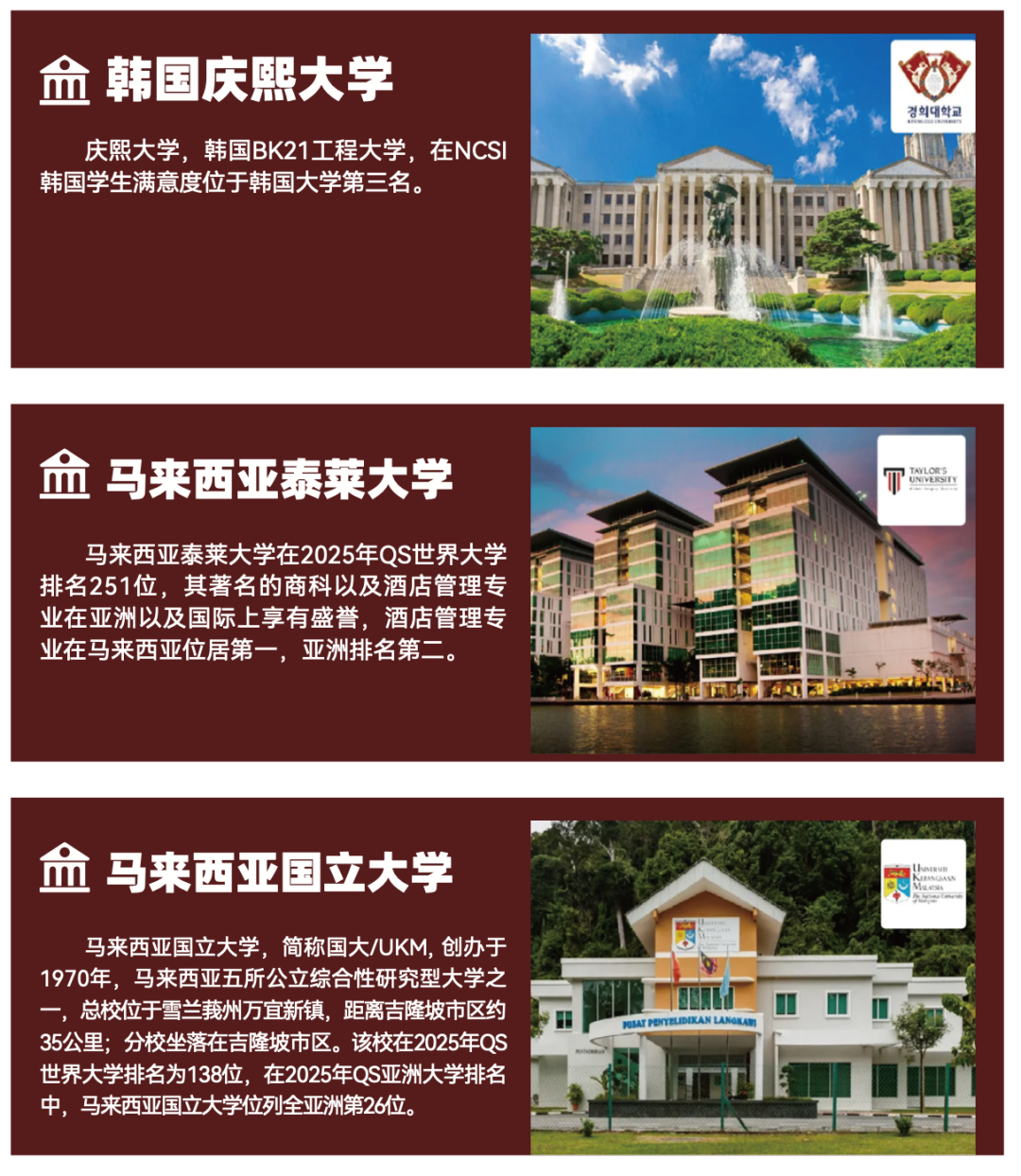 1. 专升本、本升硕、硕升博。专业选择多,本硕博学制齐全。学制灵活,部分学校可 1 年制专升本,可跨专业升本,大大的节约时间成本。性价比高,一年学费仅 3-6 万,仅相当于欧美国家 1/5,与国内专升本费用相当;硕博项目,1.5-2 年本升硕,3 年制硕升博,4 年制硕博连读学制齐全,学制灵活,部分学校可 1-1.5 年制,可寒暑假授课升学,大大节约时间成本。
