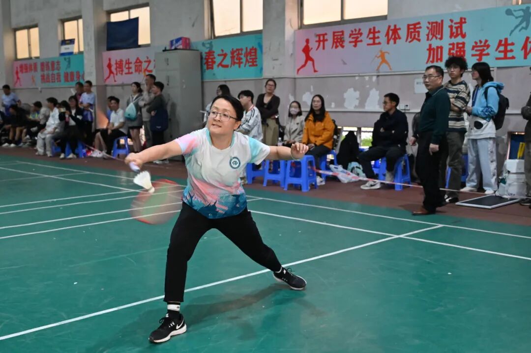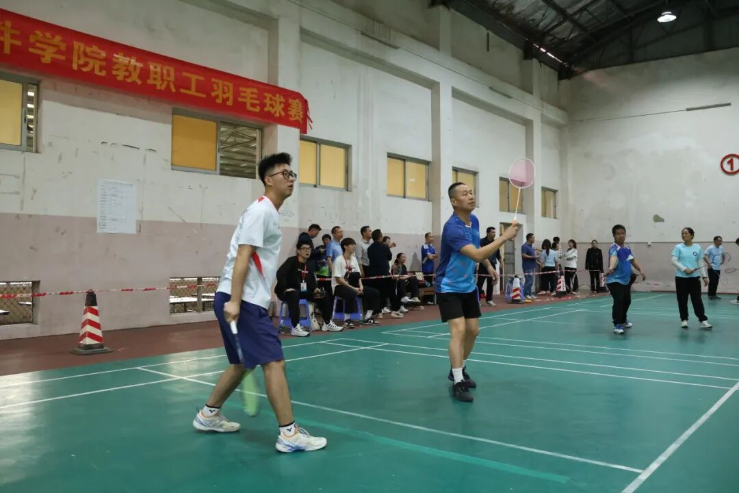 赛场上,各位参赛教职工精神抖擞,斗志昂扬。他们时而精准吊球,时而大力扣杀,时而巧妙网前截击,时而快速后场回防,每一个动作都展现出扎实的功底和娴熟的技巧。选手们在场上挥洒汗水,顽强拼搏,充分展现了我院教职工积极进取、永不言弃的良好精神风貌。场下,助威声、呐喊声、掌声此起彼伏,气氛热烈而友好,充分体现了“团结、和谐、奋进”的比赛氛围。无论是经验丰富的老将,还是初露锋芒的新秀,都全身心投入,享受着运动带来的快乐与激情。