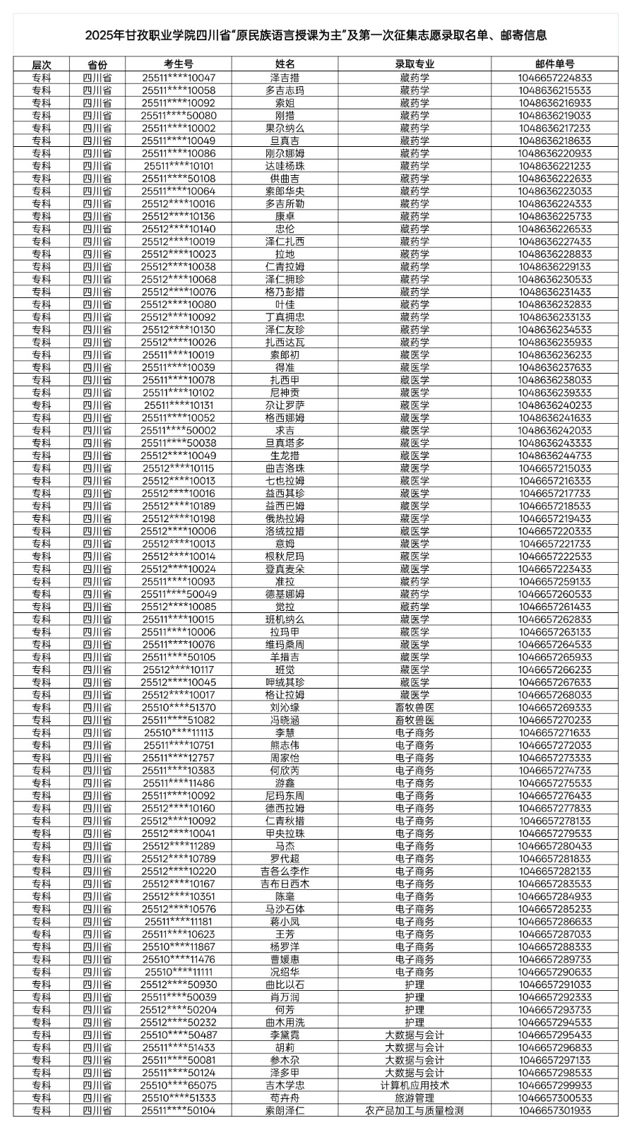 2025年甘孜职业学院四川省艺术类、物理类、历史类及云南省录取名单、邮寄信息(二).xls