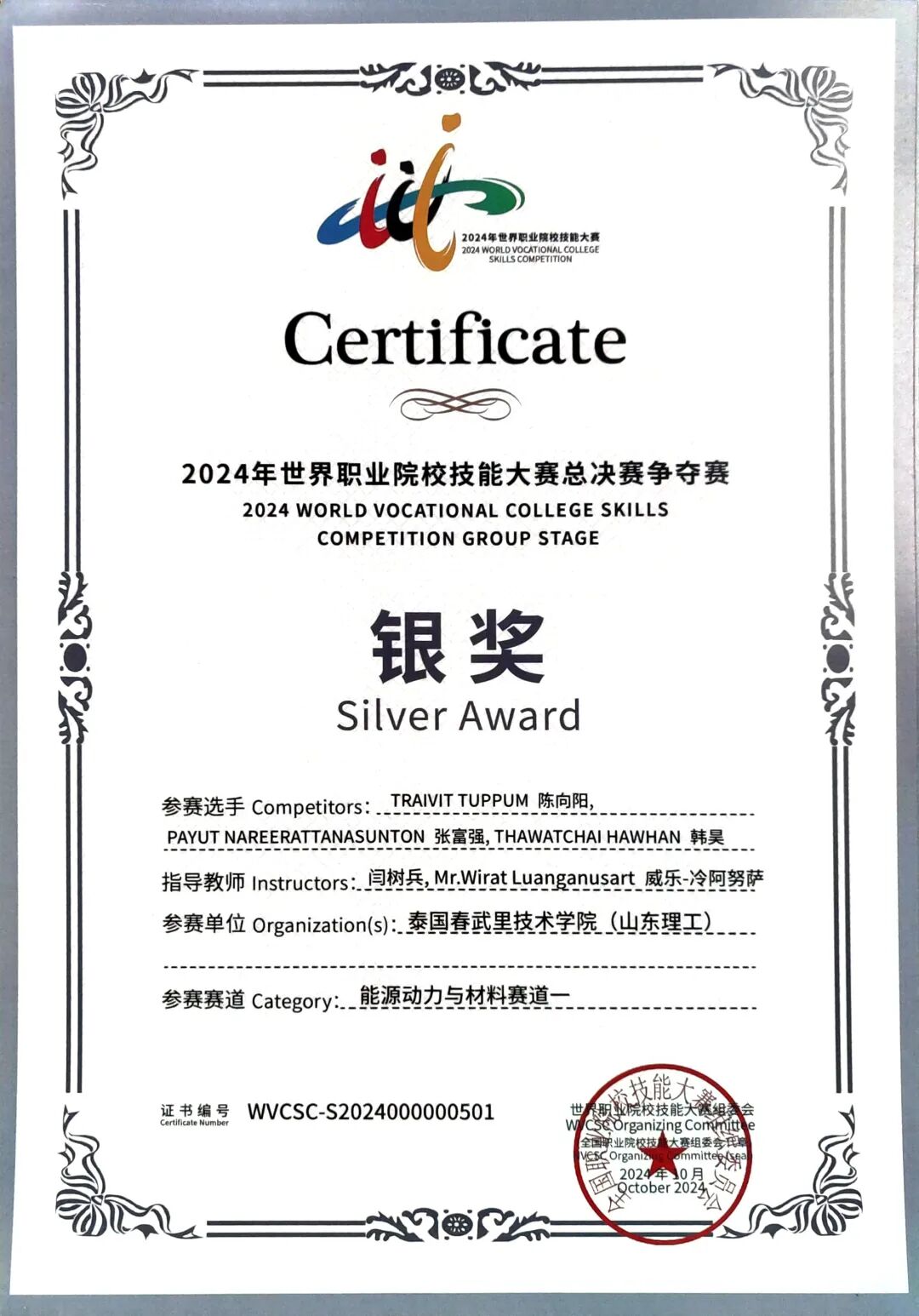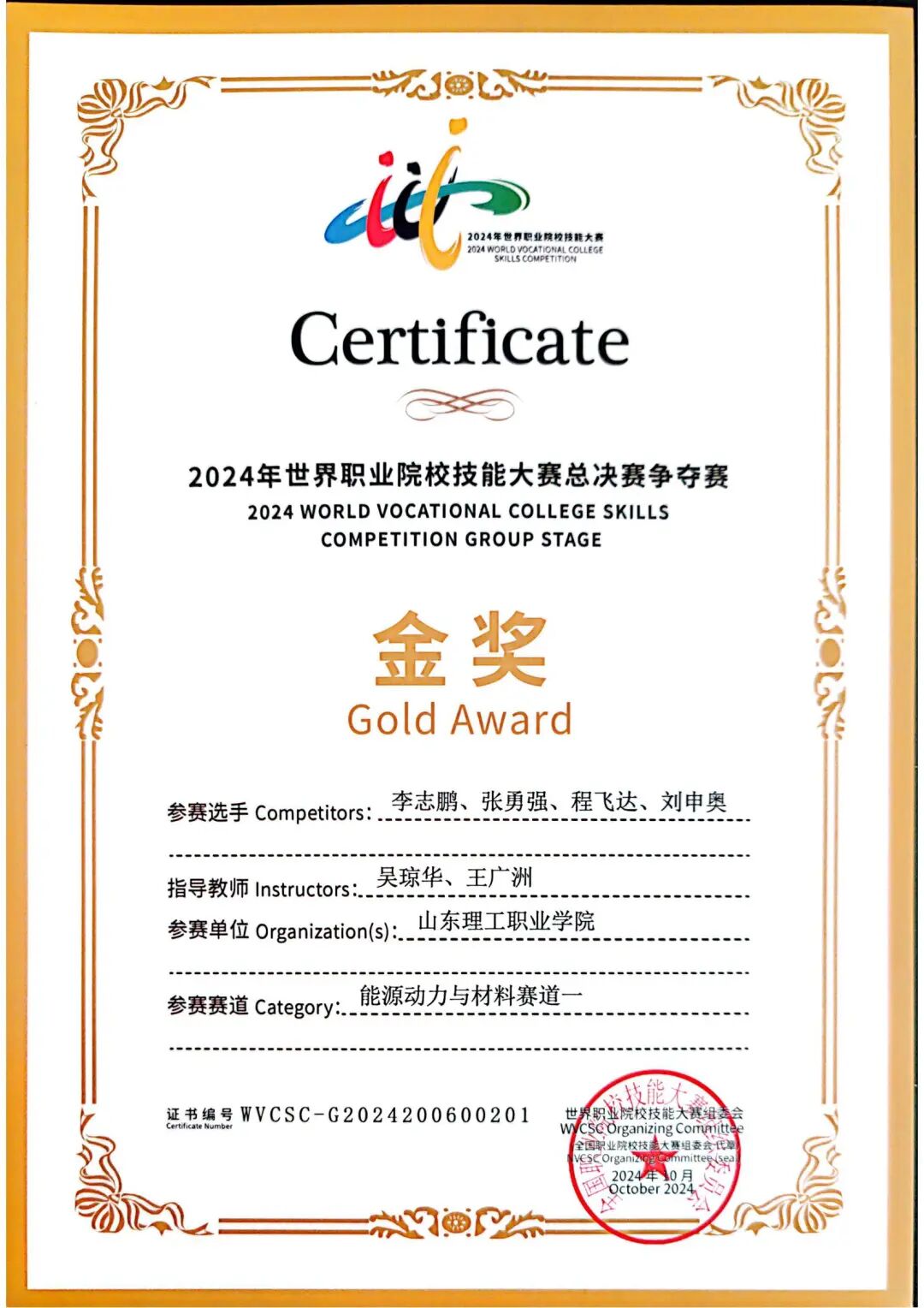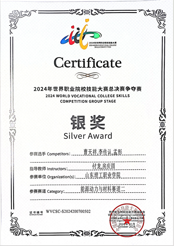 2024年,学生在“一带一路新能源储能技术与应用赛项”中荣获全国二等奖,在“首届新材料智能生产与检测赛项”国内总决赛(高校组)中荣获一等奖。