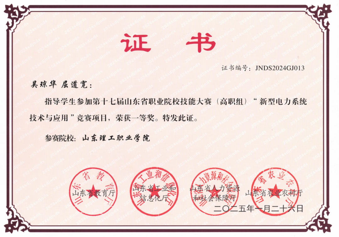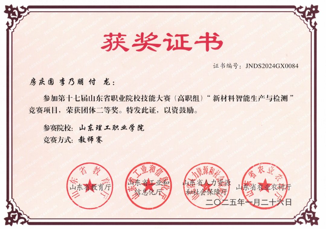 竞赛成果突出:2024年获省级职业技能竞赛一等奖1项、二等奖2项。