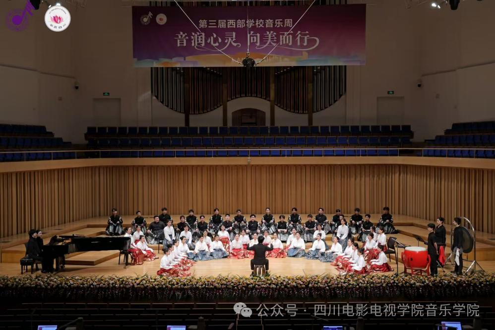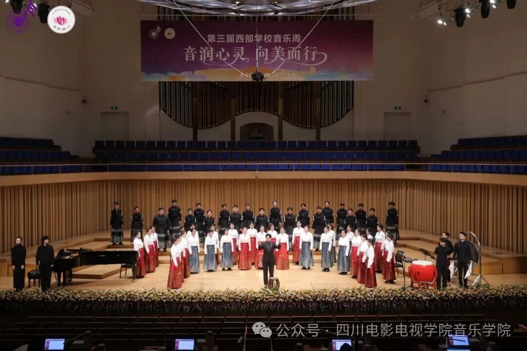 在刚刚落幕的第三届西部学校音乐周展演活动中,四川电影电视学院音乐学院“乐之声”合唱团以卓越表现,在大学生(专业组)中脱颖而出,荣膺一等奖第一名。同时指挥刘波老师凭荣获“最佳指挥奖”。这一荣誉不仅是对师生专业水准的权威认证,更是学院专业教学成果的璀璨绽放。