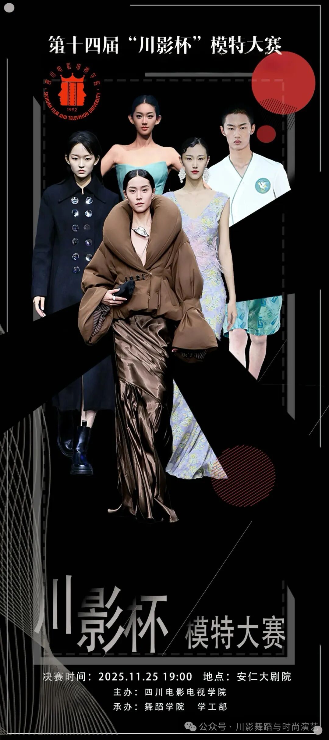 为丰富校园文化生活,营造积极向上的美育氛围,2025年11月25日晚19:00,由四川电影电视学院主办,舞蹈学院与学工部联合承办的第十四届“川影杯”模特大赛在安仁校区贡院大剧院精彩上演。