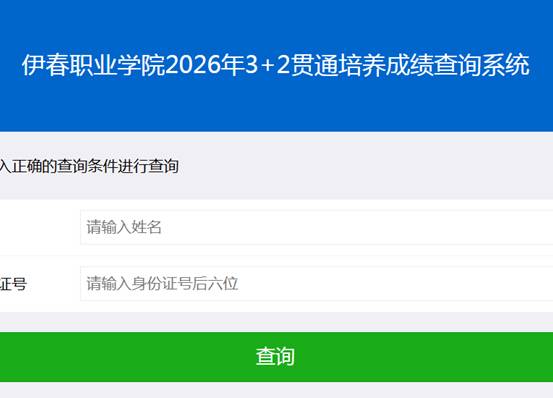 各位考生: 伊春职业学院2026年”3+2”中高职贯通培养考试成绩已公布,请登录学校官网,在“招生就业”栏目选择“伊春职业学院2026年”3+2”中高职贯通培养成绩查询系统”,凭考生本人姓名及身份证号后六位查询考试成绩。 学校网址:http://www.ycvc.com.cn