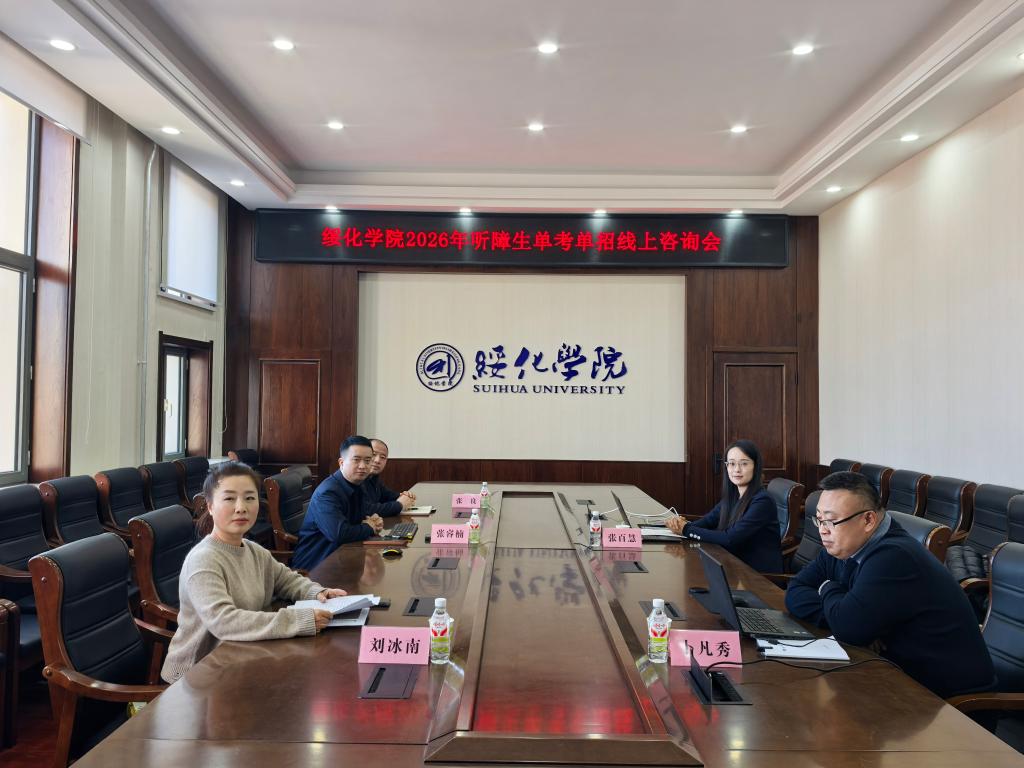 12月12日,2026年听障生单考单招线上咨询会在笃信楼409召开。招生就业处处长刘冰南出席并主持会议、特殊教育学院党总支书记卜凡秀出席会议。