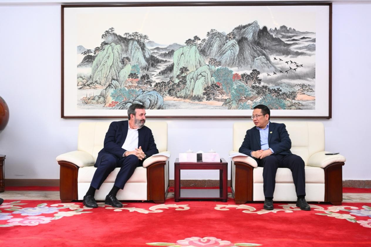 徐坤对拉斯洛的来访表示欢迎,并介绍了学校办学历史与发展成就。他表示,北邮是一所以信息科技为特色的高水平研究型大学,为推进国际信息科技创新交流和数字经济人才培养作出了重要贡献。近年来学校积极推进智能技术赋能教育变革,取得了一系列丰硕成果,为促进双边合作注入了新的动能。希望在匈牙利政府部门支持下,进一步深化与匈牙利高校及产业界的广泛合作,加强人才联培、校企协同和学术交流,为深化中匈新时代全天候全面战略伙伴关系作出积极贡献。