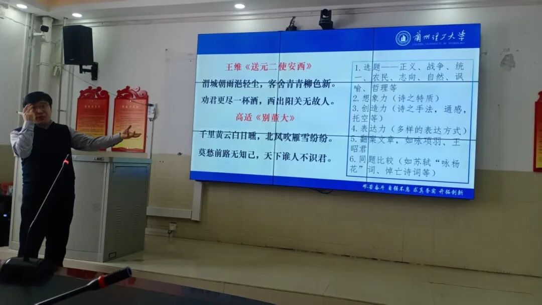 钱得运结合自身深厚的学术积淀与丰富的教学经验,围绕三大核心模块展开精准授课。在古典诗词教学模块,他溯源诗歌源流,详解“兴、观、群、怨”文化功用与“赋、比、兴”艺术手法,辅以教学案例示范;在中华典籍教学实践模块,他厘清“国学”内涵定位,指明典籍智慧转化为课堂资源的实践路径;在教师素养提升模块,他分享诗文鉴赏妙招,助力教师构建个性化知识体系。整场培训理论深入浅出、指导具体可行,赢得参训教师一致好评,充分彰显了兰州理工大学教师的扎实教学能力与深厚学术素养。