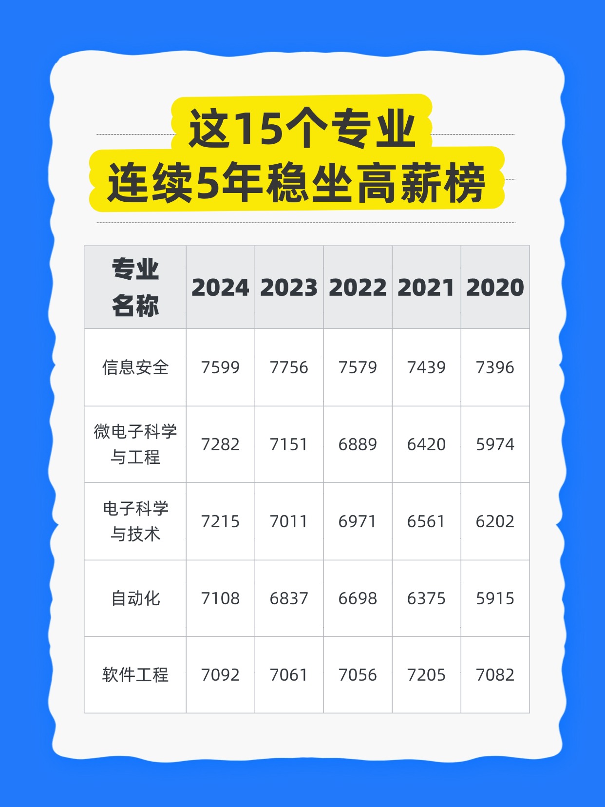 根据《2020-2024届中国本科生就业报告》数据显示,有上述本科专业连续五年进入“毕业生半年后月收入TOP50榜单”。注:毕业生规模过小的专业不包括在此排序中来源:《2020-2024届中国本科生就业报告》