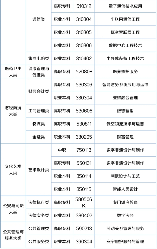 近日,教育部对2026年职业教育拟招生专业设置管理工作进行安排,并公布《2025年职业教育专业目录增补清单》,共包含57个职业教育专业。其中,中职专业3个、高职专科专业31个、职业本科专业23个。