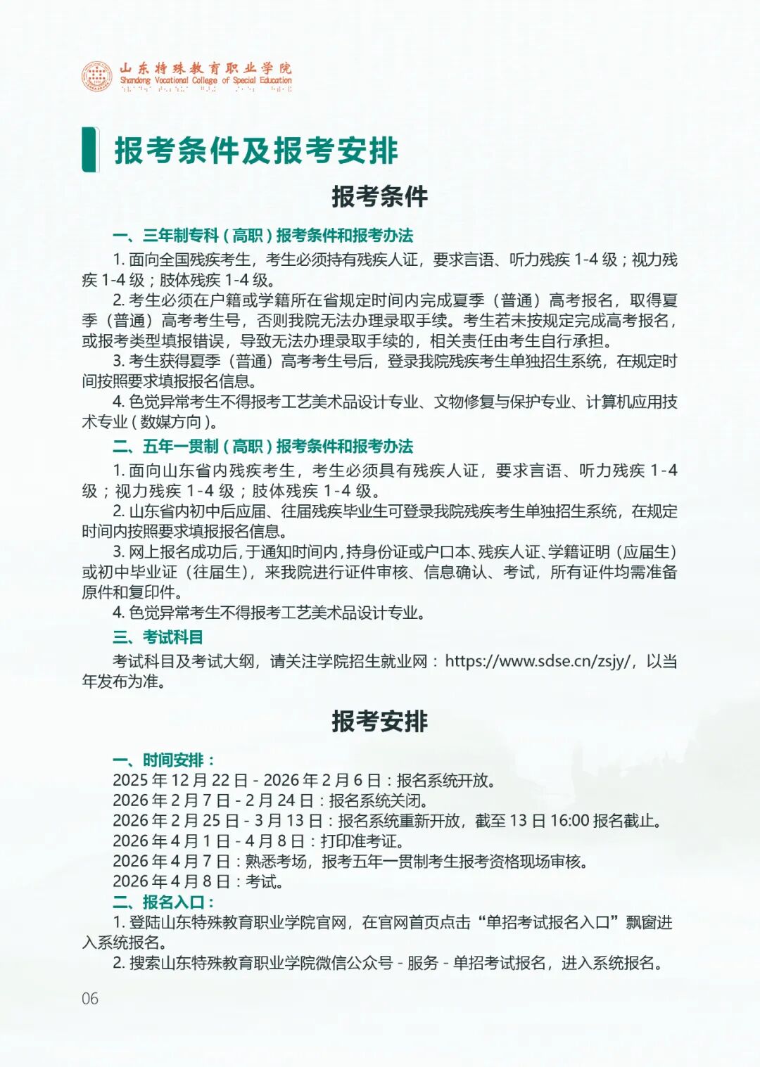 山东特殊教育职业学院2026年残疾考生单独招生考试招生简章
