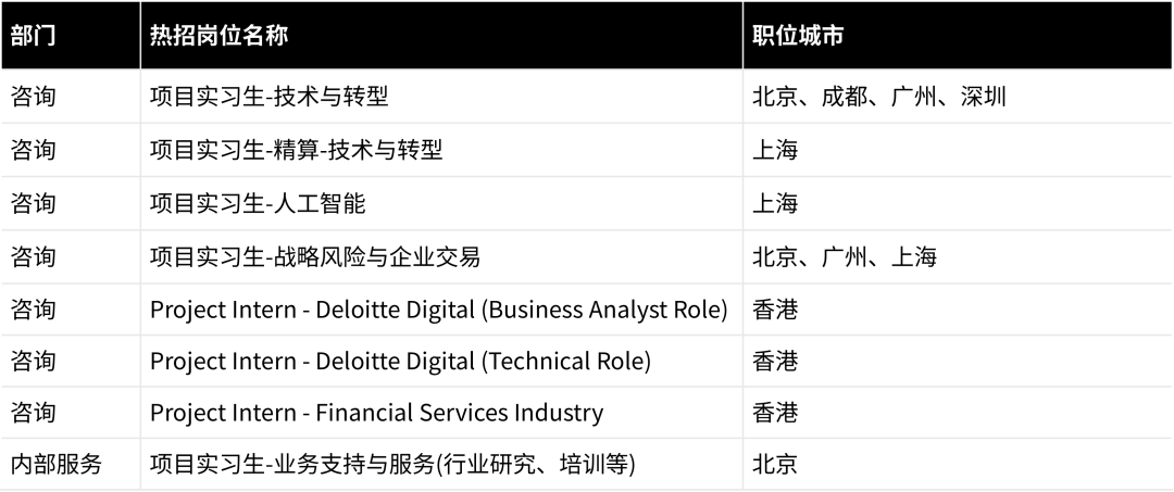 项目实习生基于项目实际需求招聘,实习时间灵活。请扫描下方二维码进入德勤官网实习生招聘页面,根据个人实际情况申请热招岗位,或者查看其他项目实习生岗位。