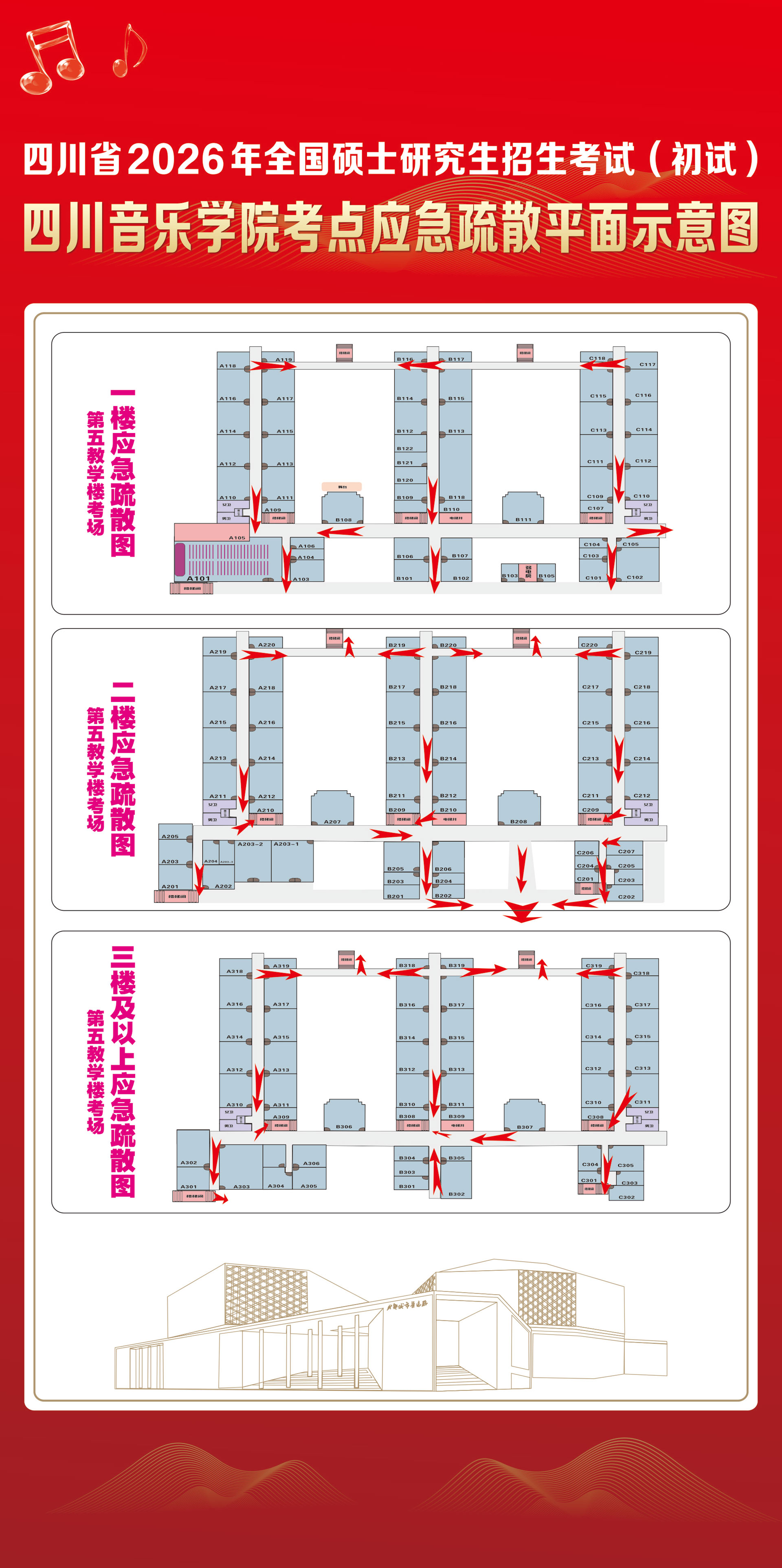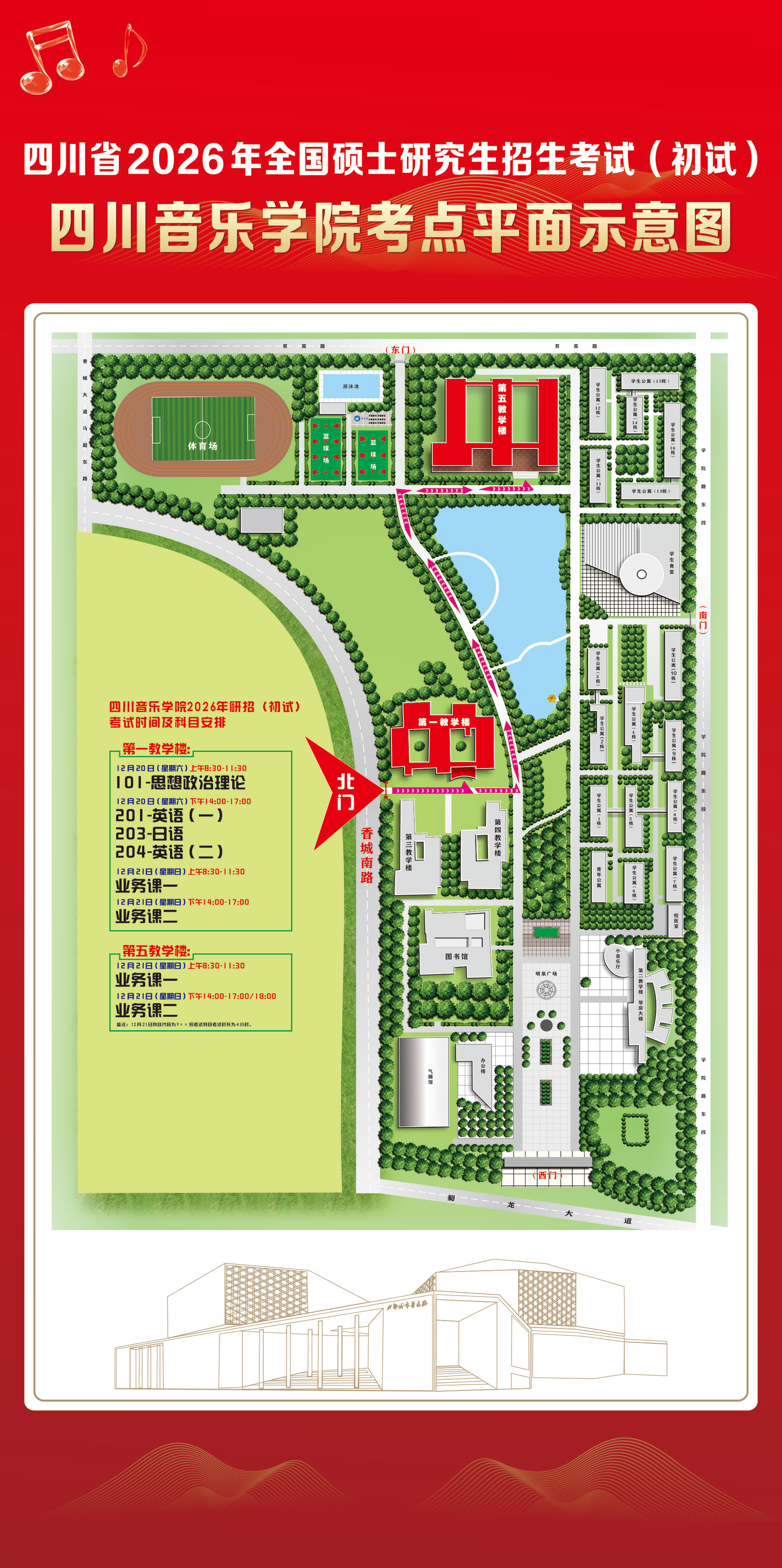 (一)考场安排:四川音乐学院新都校区(详细地址:成都市新都区蜀龙大道中段620号,点击查看:新都校区平面图),具体地点见准考证。