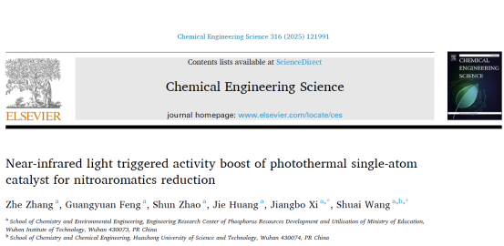 近日,我校化学与环境工程学院2025年新引进的国家级青年人才王帅教授团队在化学工程研究领域的“三大刊”之一《Chemical Engineering Science》(武汉工程大学TOP期刊)发表了题为“Near‐infrared light triggered activity boost of photothermal single-atom catalyst for nitroaromatics reduction”的研究论文,武汉工程大学为第一单位。
