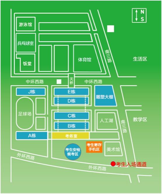 按照有关要求,考生进入校园后,须将物品存放在考点指定区域,只准携带准考证、有效身份证件及符合规定的考试用品,通过智能安检门检查后方可进入考场封闭区。严禁考生携带各类电子通讯工具(如手机、智能手表(手环)、智能眼镜等穿戴设备)等物品进入考场封闭区域。
