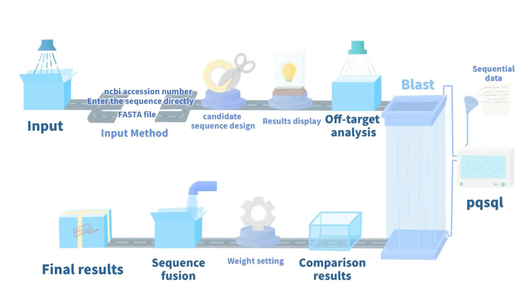 此外,团队为双链RNA设计搭建了一个多功能计算机辅助平台,并增设了脱靶效应分析等辅助模块。通过Scrum框架,融合跨学科专家反馈,团队自建出脱靶数据库和序列权重选择机制,拓展了系统核心,为人工智能辅助整合奠定坚实基础。