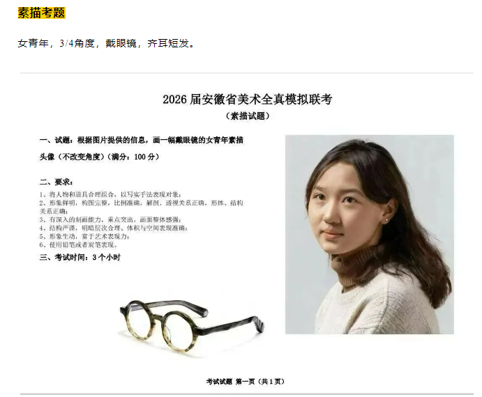 安徽2026年美术与设计类专业统考考题(素描)