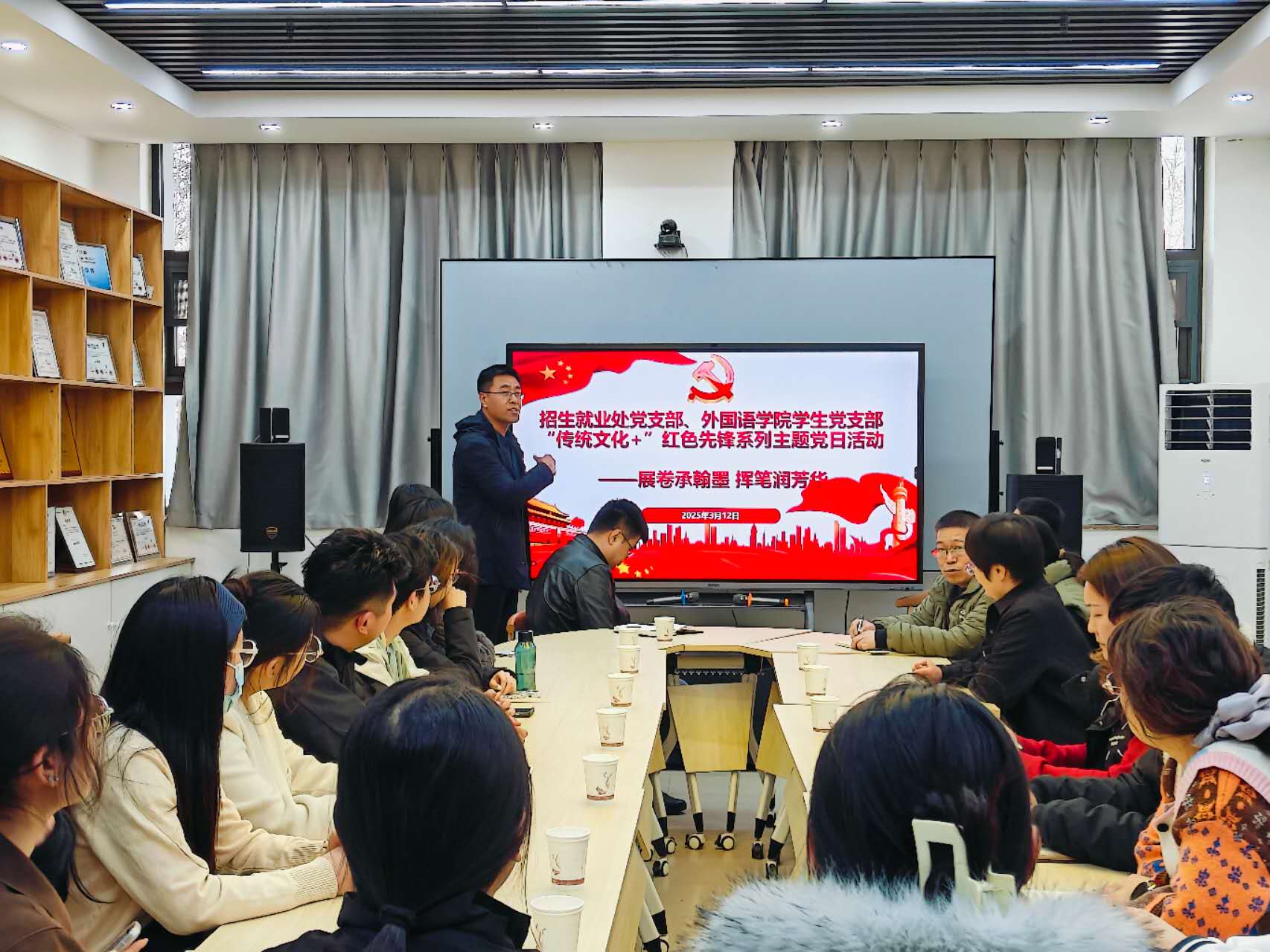 2025年3月12日,招生就业处党支部与外语学院学生党支部举办了一场“展卷成翰墨,挥笔润芳华”--“传统文化+”书法的主题党日活动。此次活动旨在通过书法这一传统文化形式,激发党员们的爱国热情,弘扬党的优良传统,同时促进两个党支部之间的文化交流与合作。