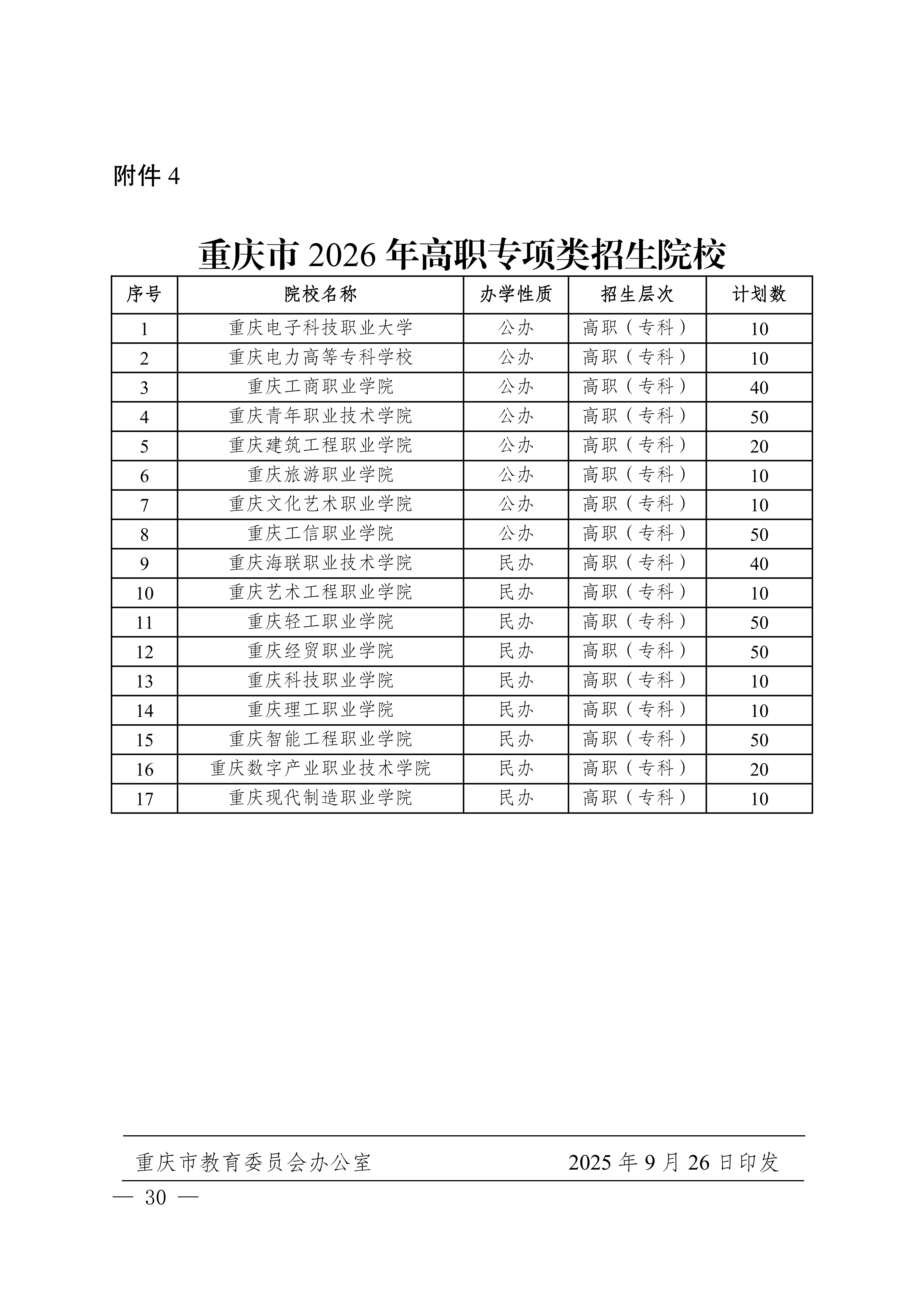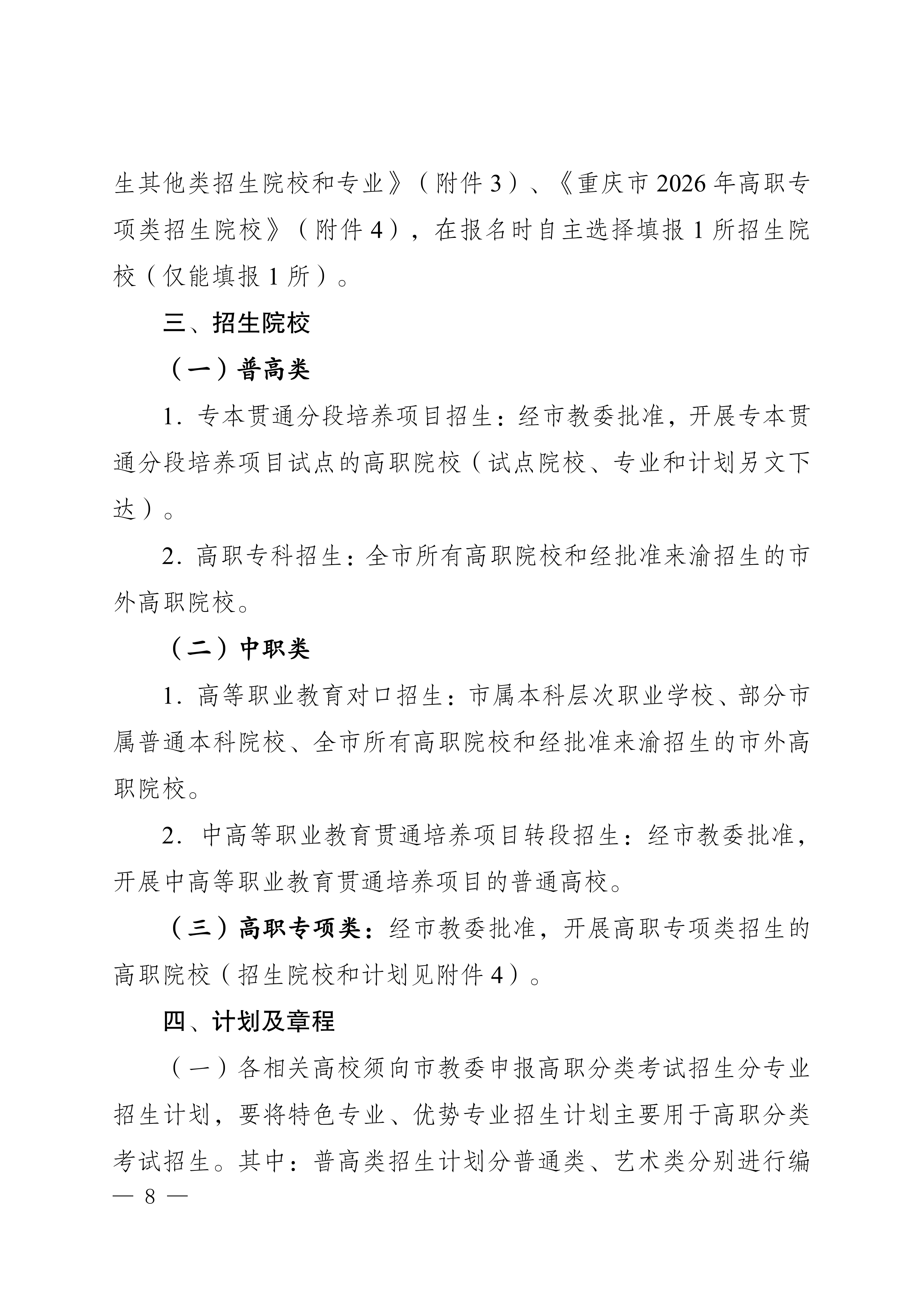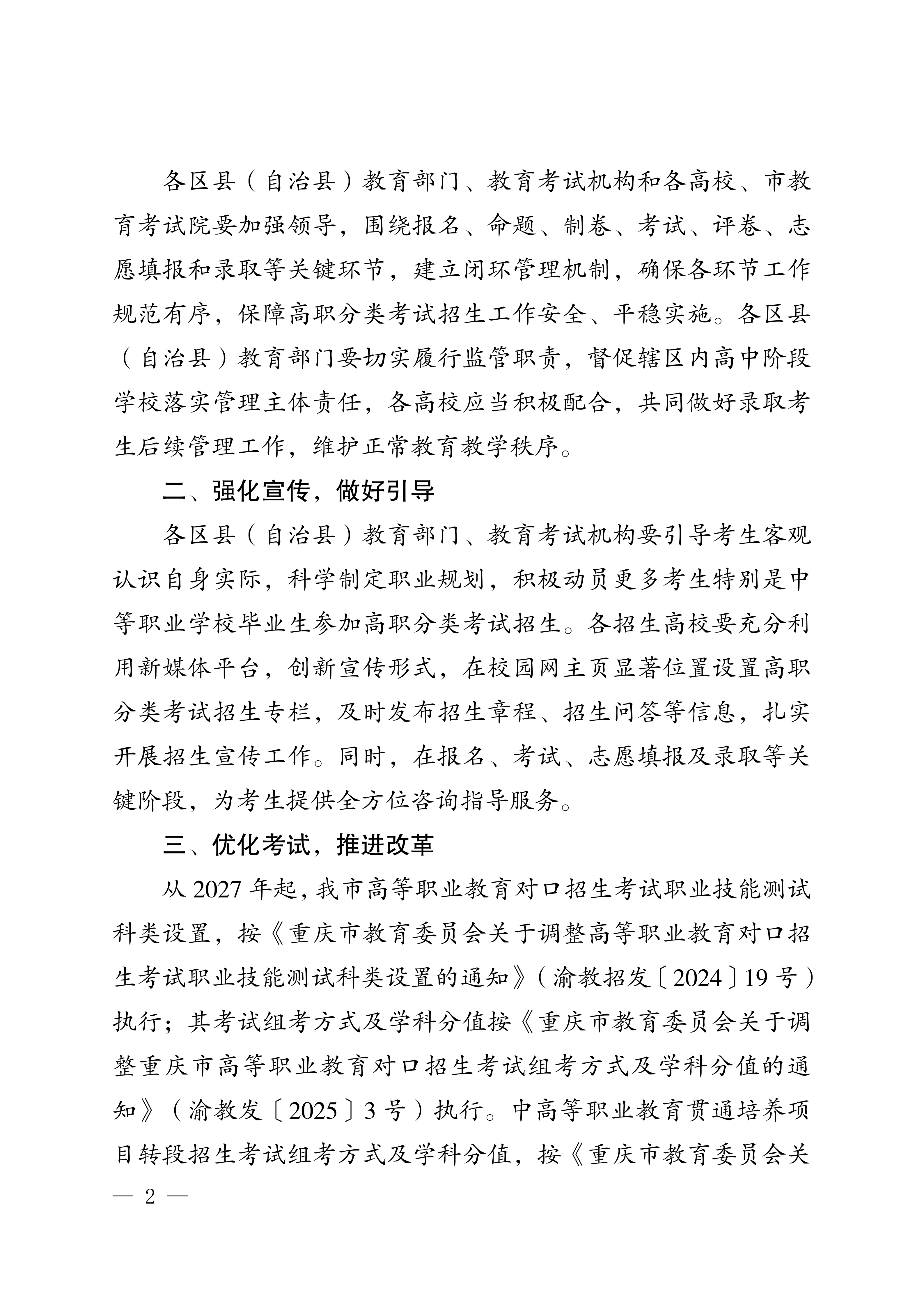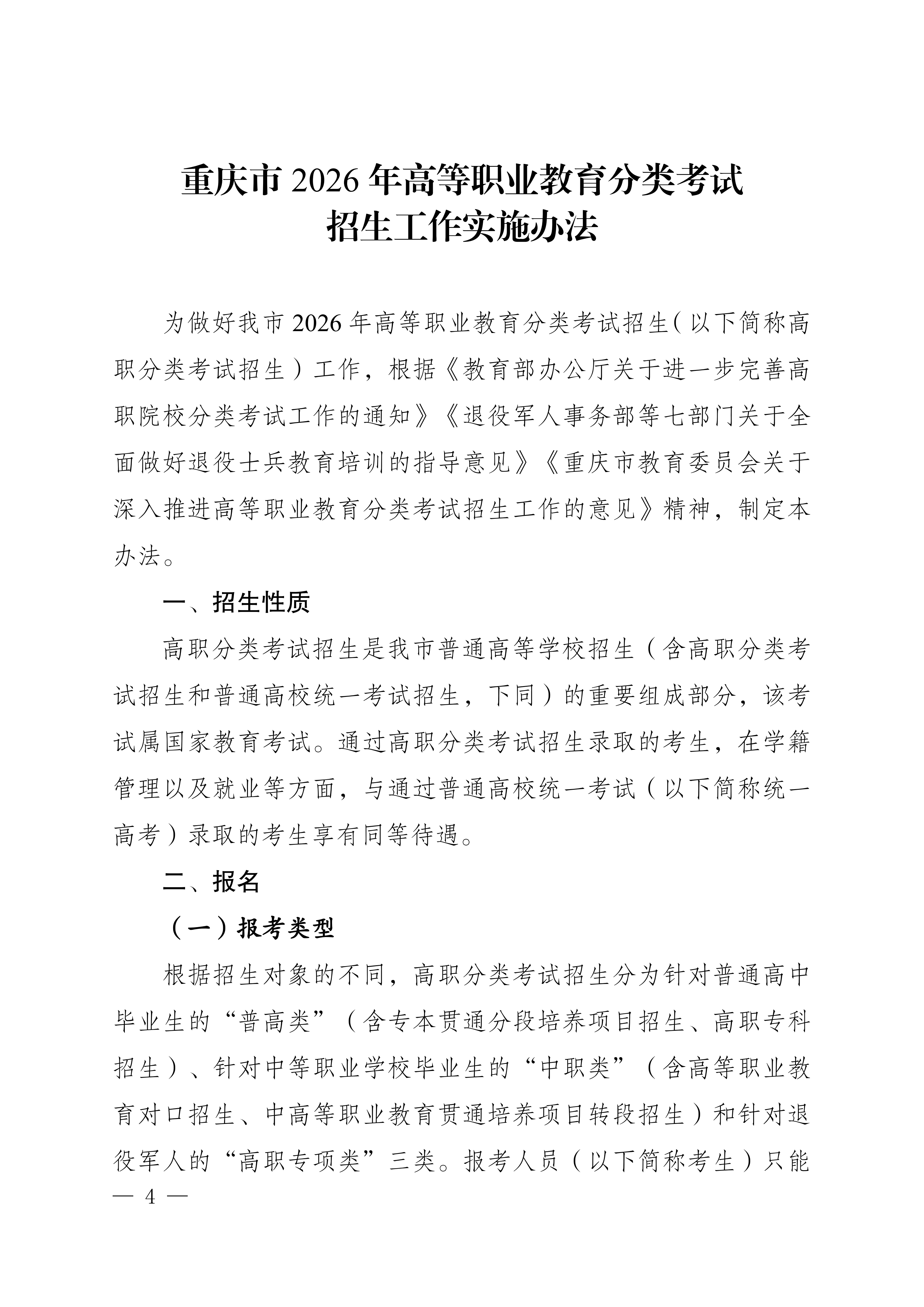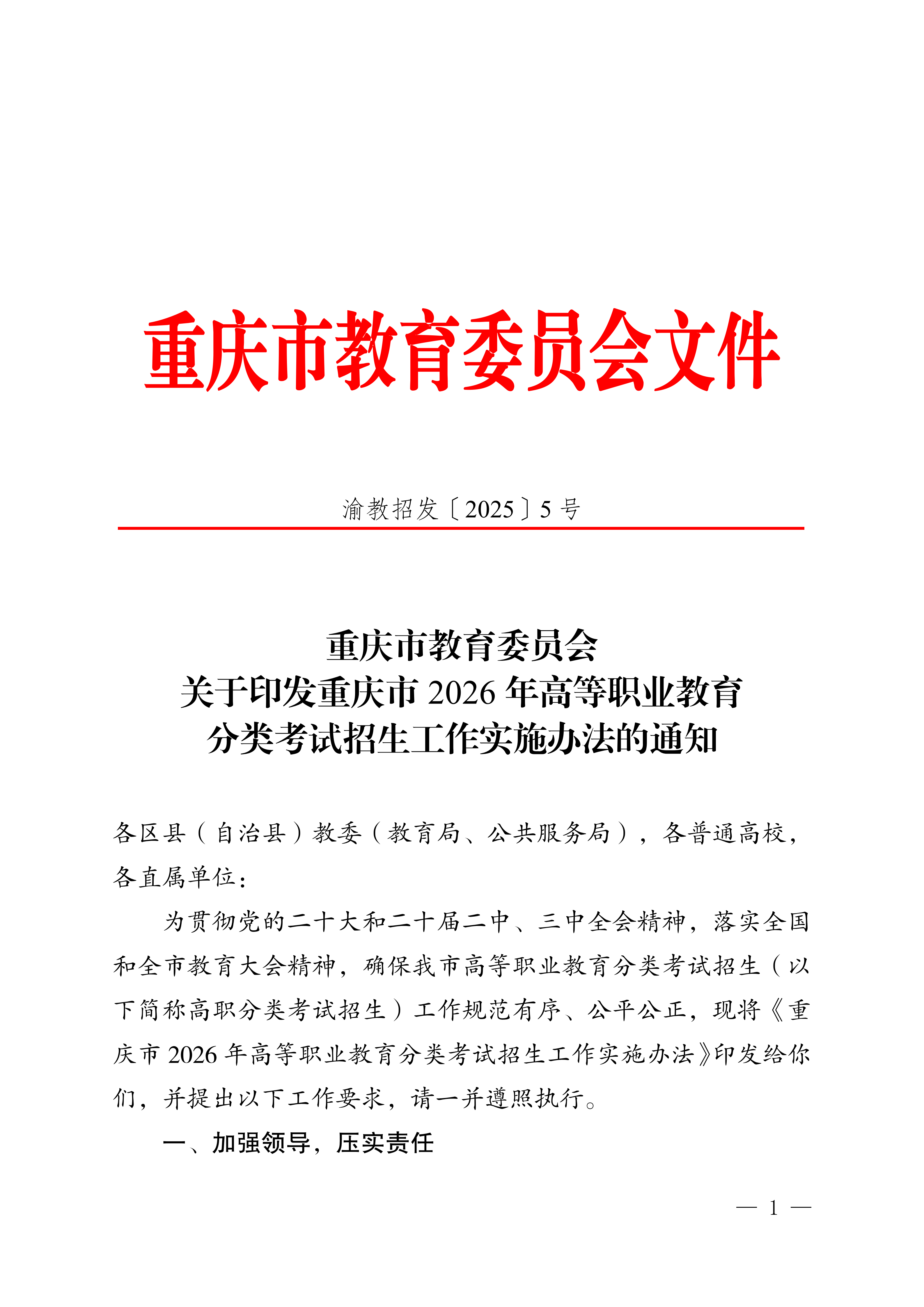 重庆市教育委员会关于印发重庆市2026年高等职业教育分类考试招生工作实施办法的通知