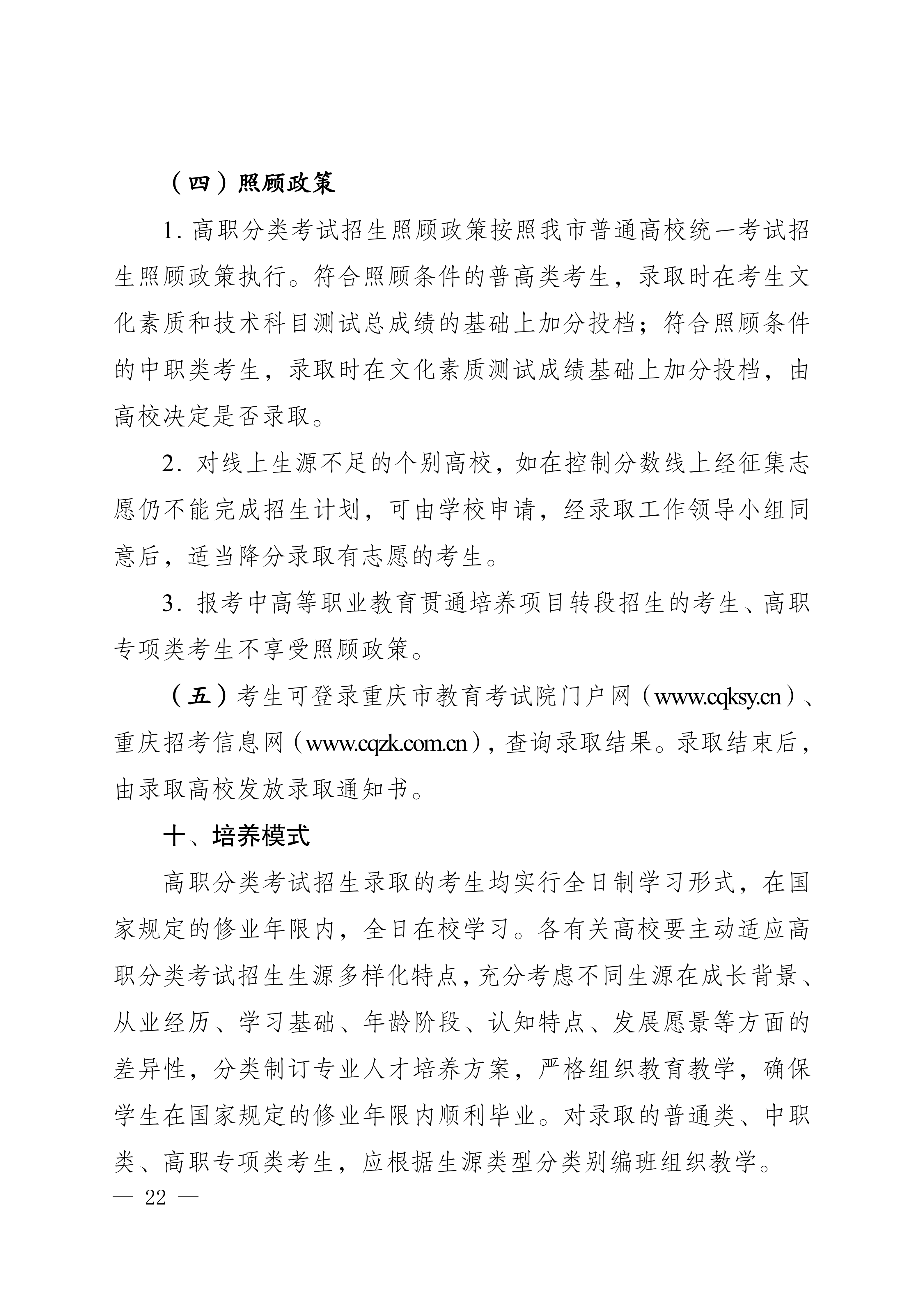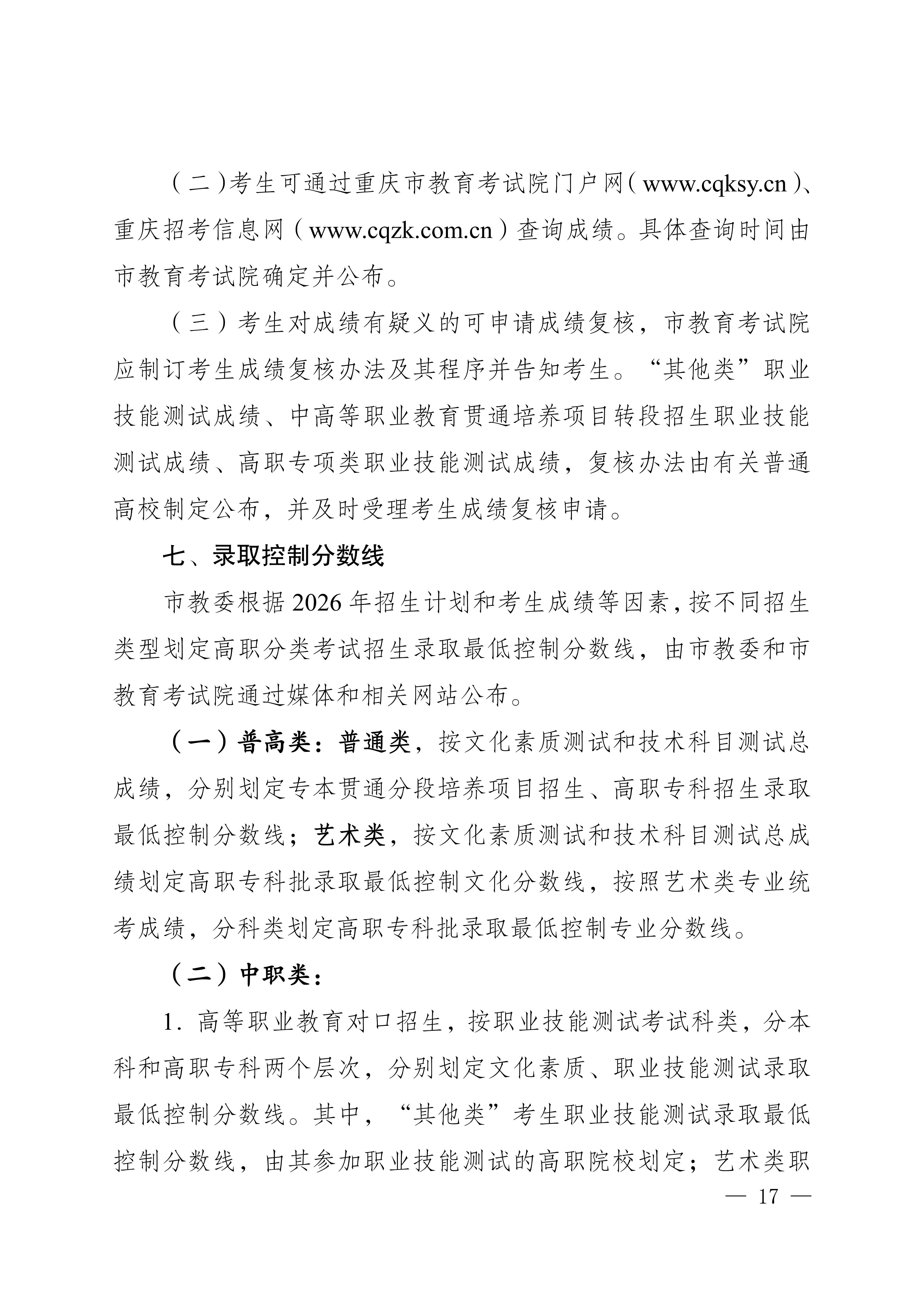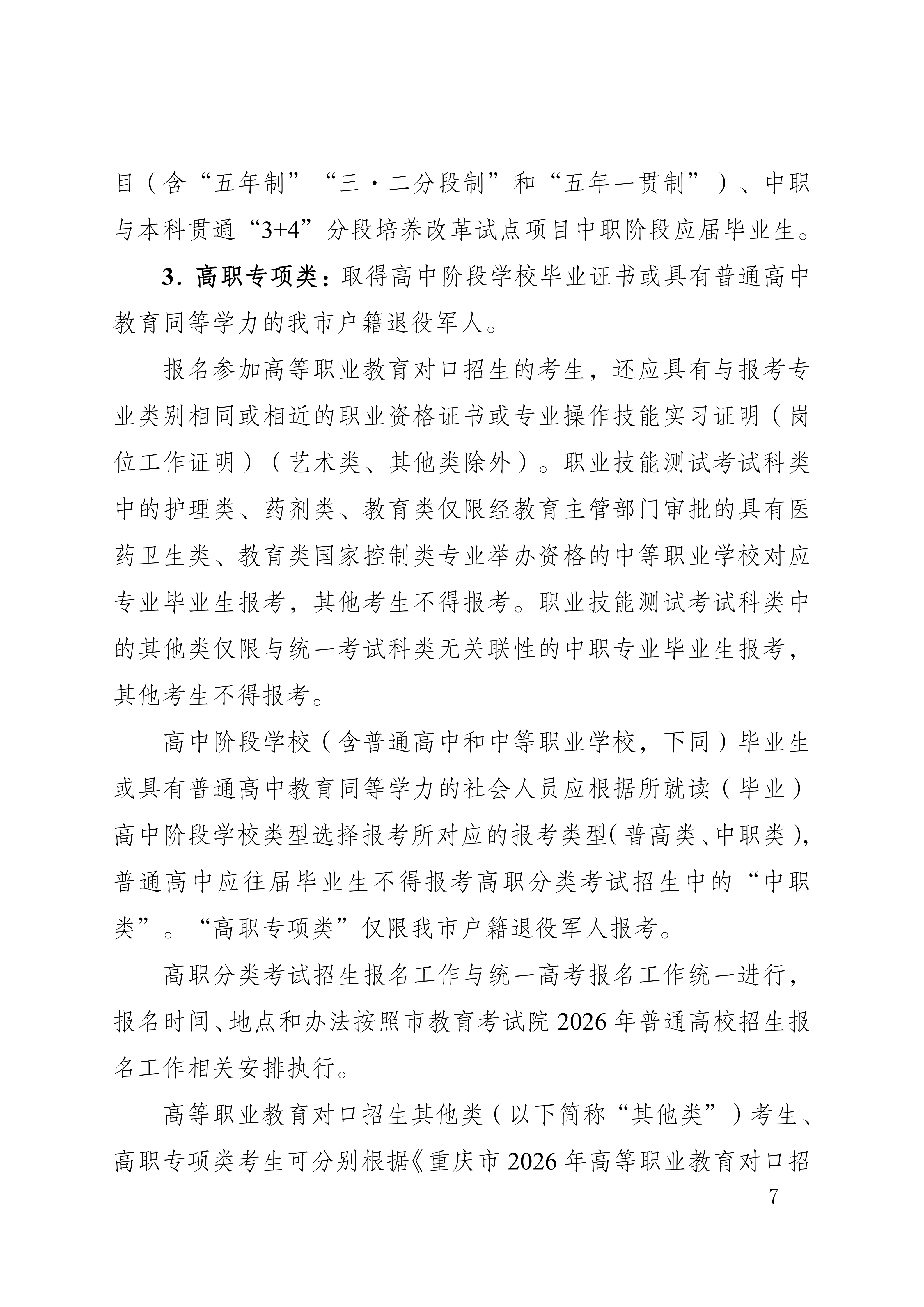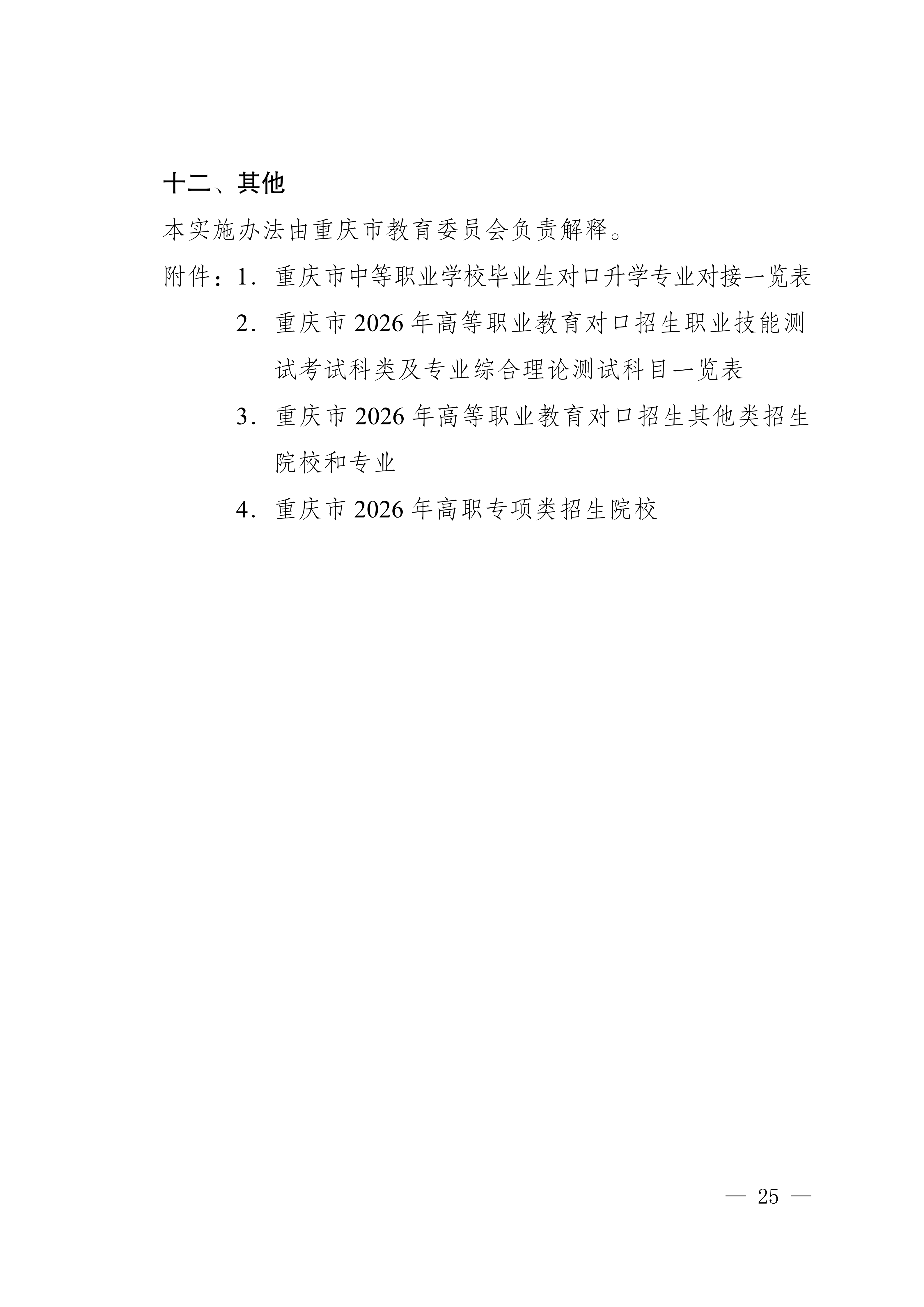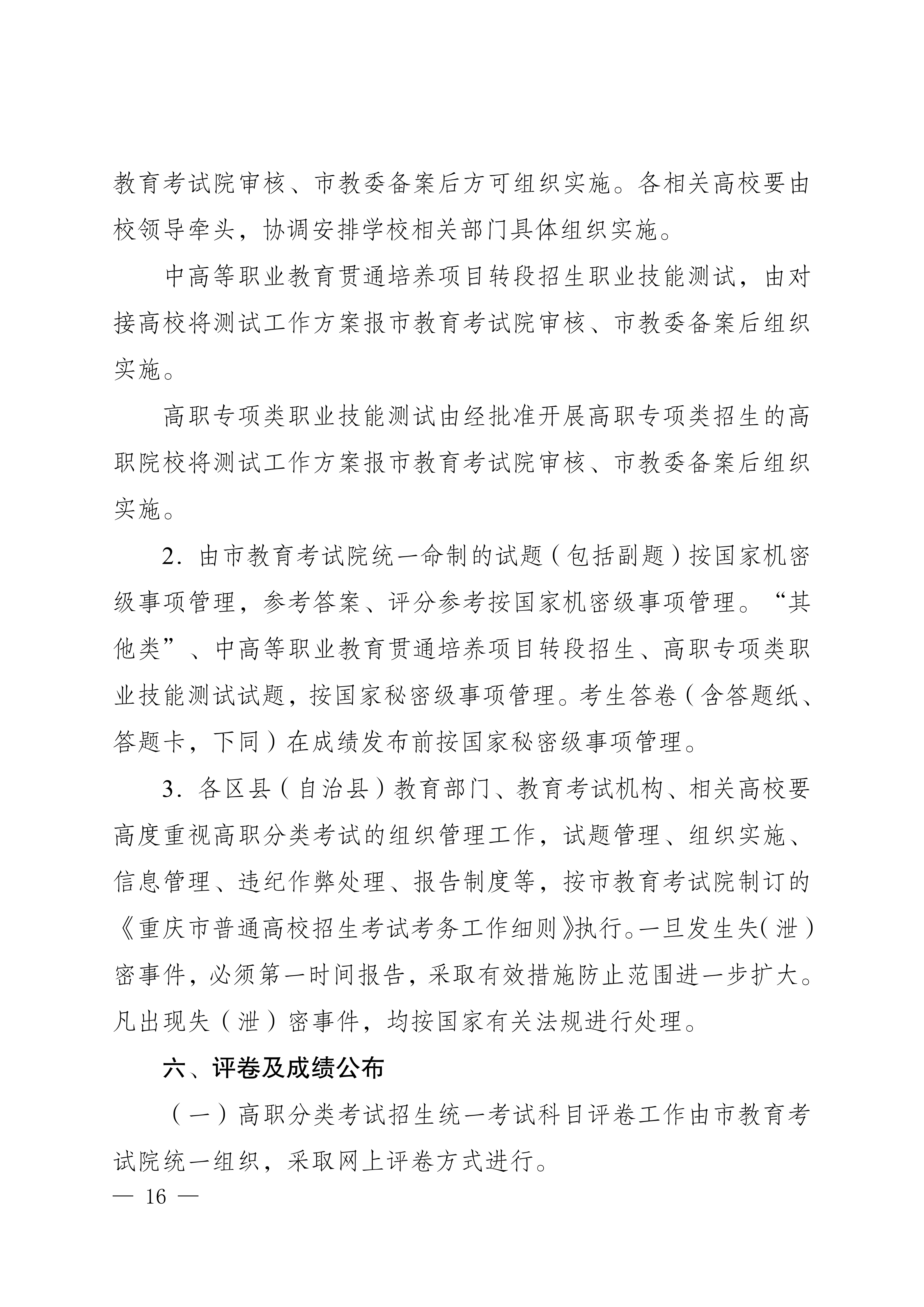 重庆市教育委员会关于印发重庆市2026年高等职业教育分类考试招生工作实施办法的通知