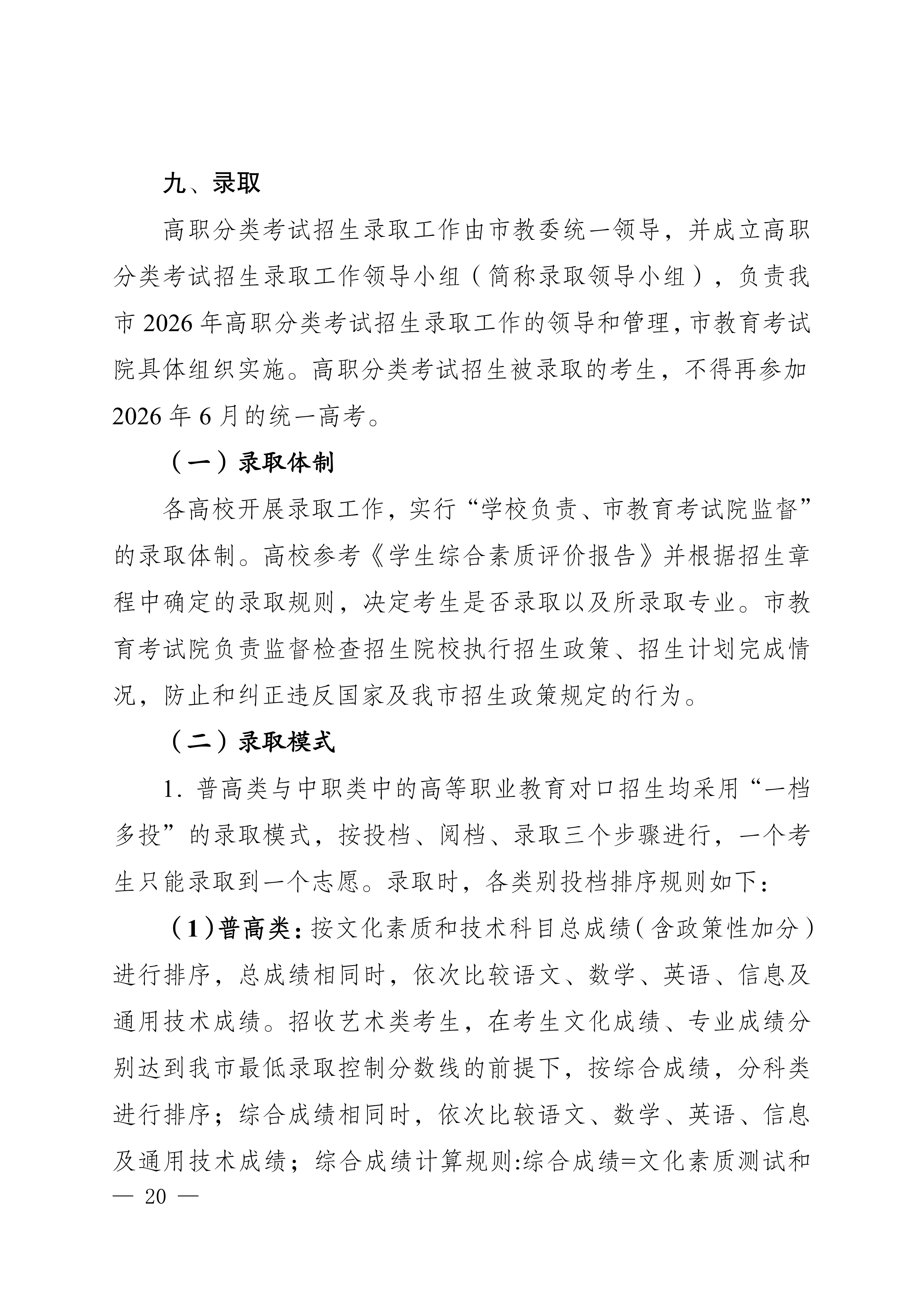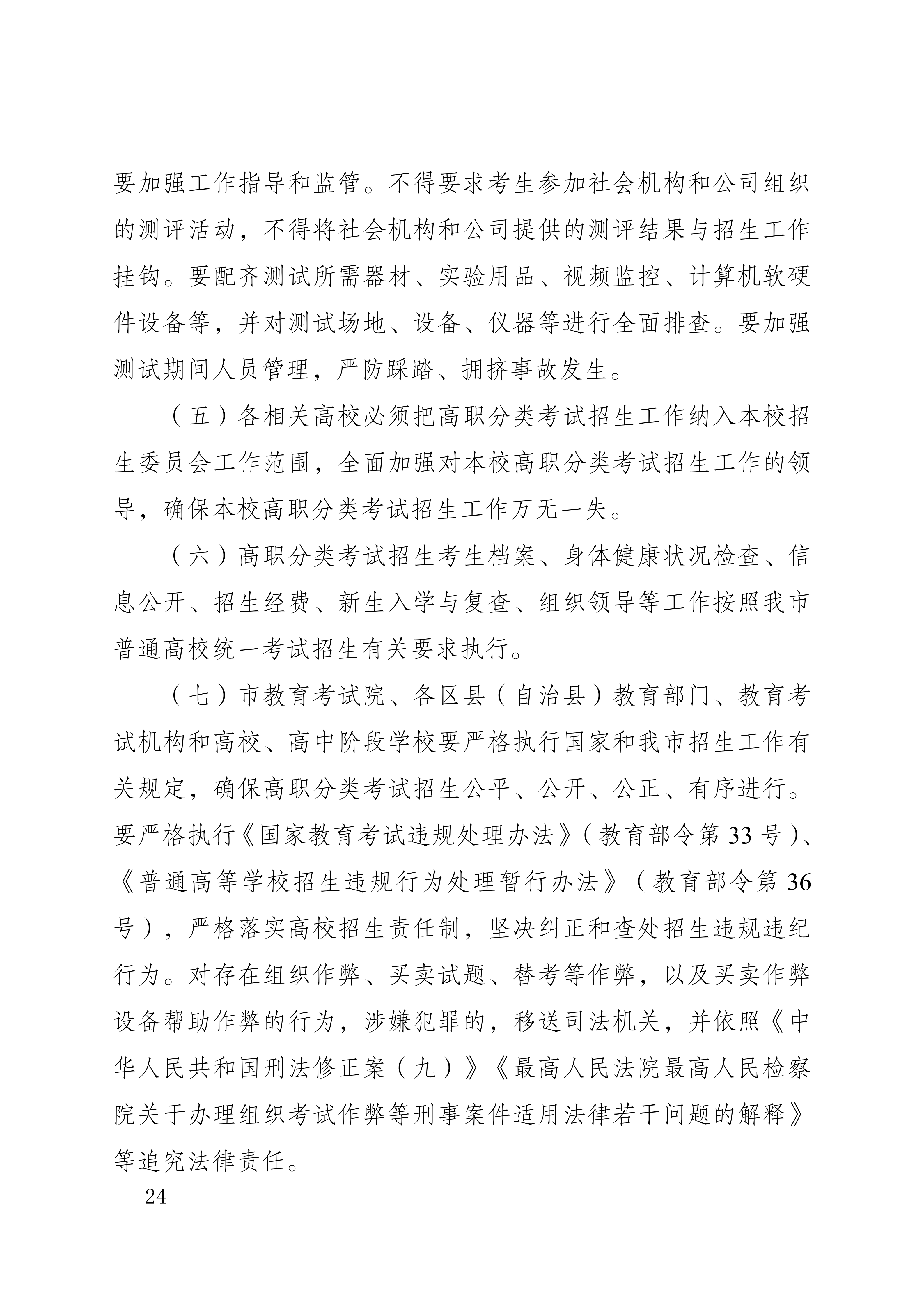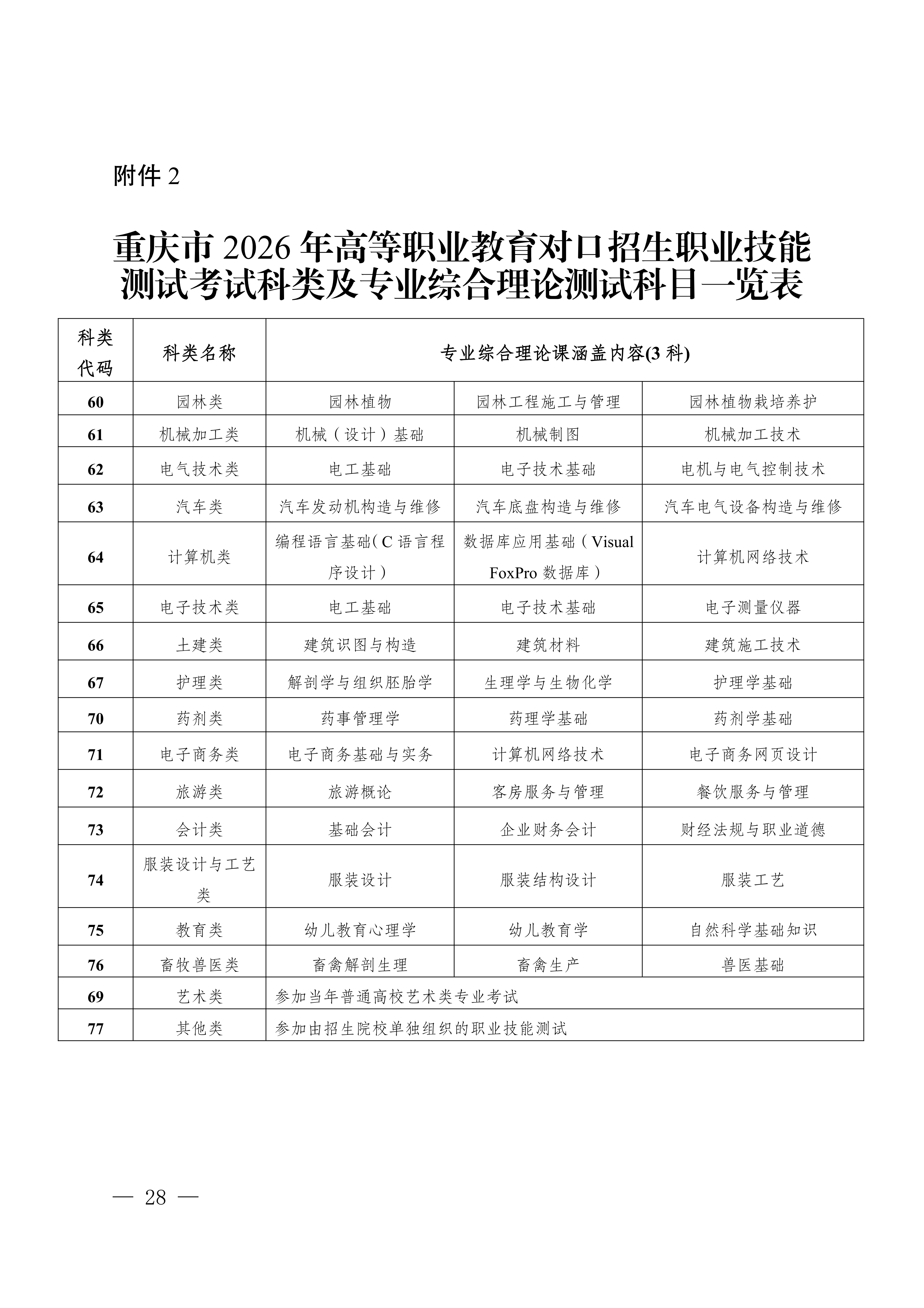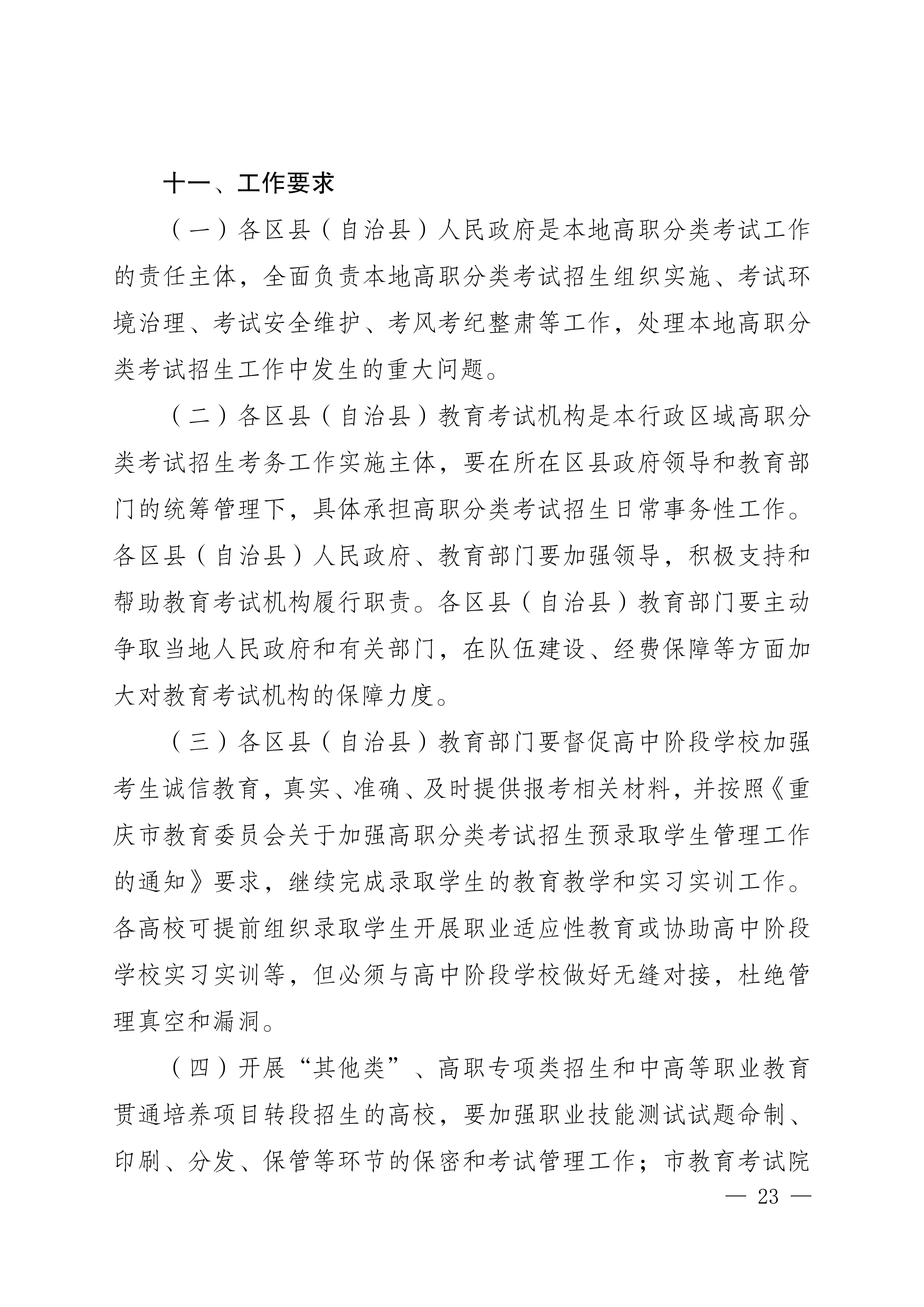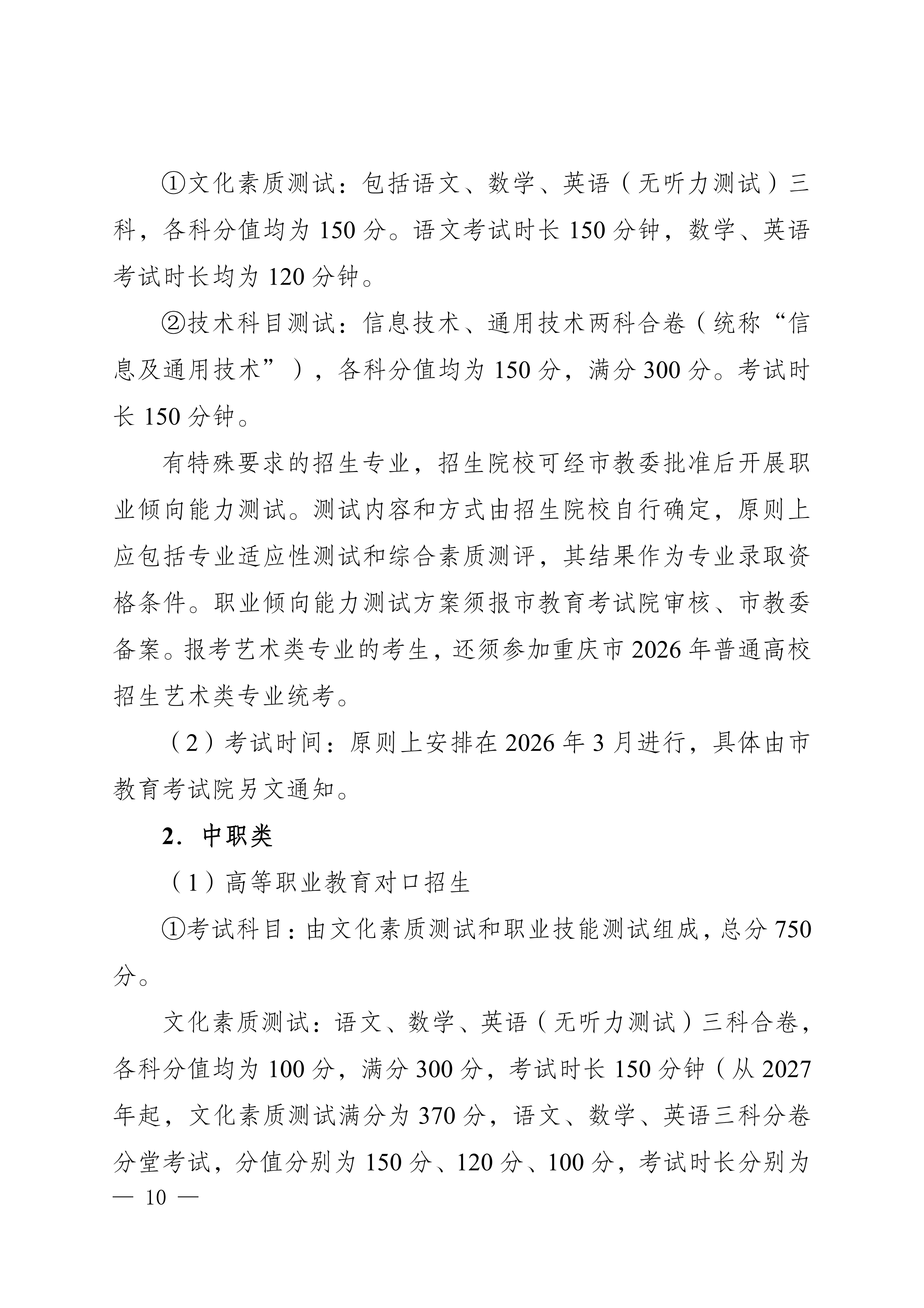 重庆市教育委员会关于印发重庆市2026年高等职业教育分类考试招生工作实施办法的通知