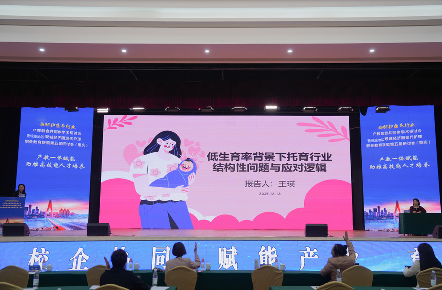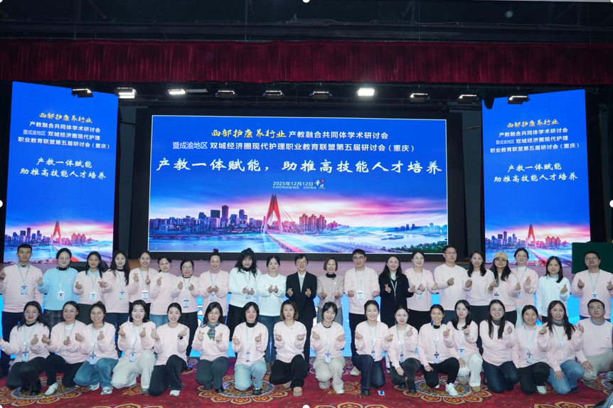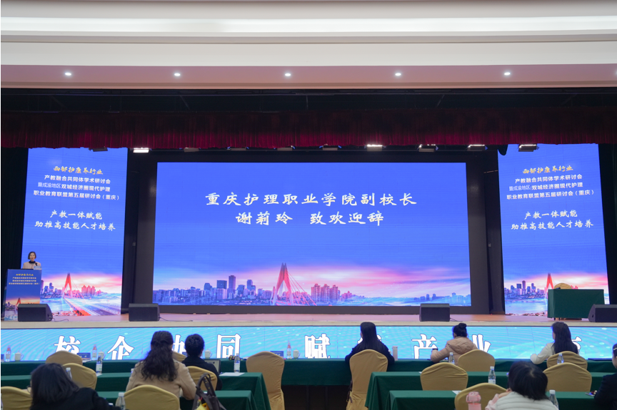 2025年12月12日,2025年西部护康养行业产教融合共同体学术研讨会暨成渝地区双城经济圈现代护理职业教育联盟第五届研讨会在璧山区顺利召开。重庆护理职业学院护理系承办第一分会场,主题为“产教一体赋能,助推高技能人才培养”。来自四川、重庆、深圳等地70余家150余名教育、医疗及企业代表参加会议。会议由护理系副主任夏利华主持,学校副校长谢莉玲出席会议并致辞。