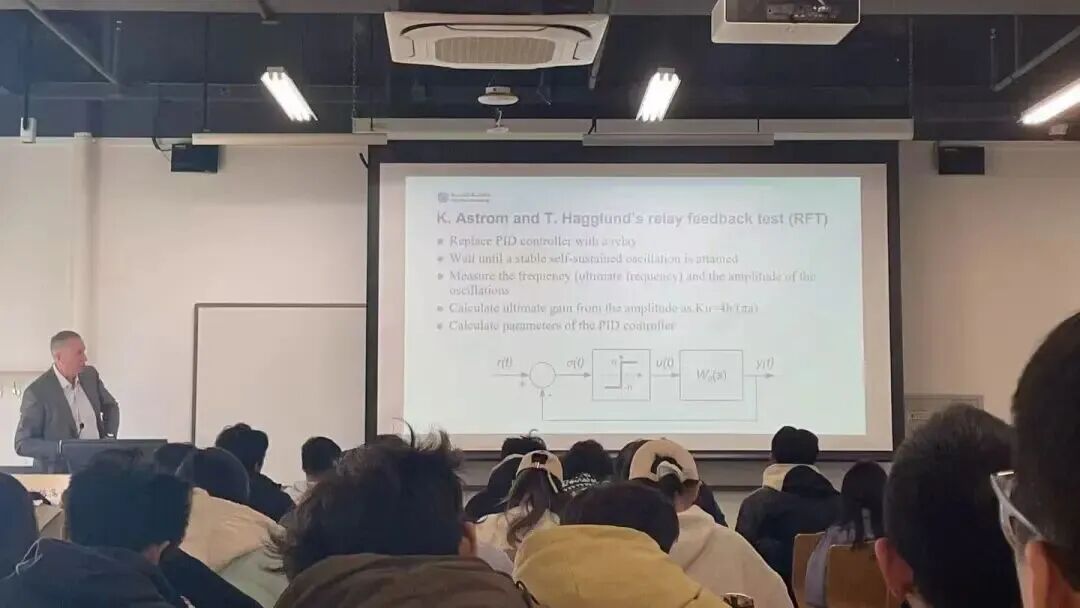 During the lecture, Professor Igor Boiko gave a systematic overview of the evolution of non-parametric PID controller tuning techniques. He explained that classical non-parametric tuning methods, such as the Ziegler–Nichols continuous cycling procedure, obtain the ultimate gain and ultimate frequency by forcing the loop into sustained oscillations, but are difficult to automate in practice. The relay feedback test (RFT), which introduces a relay nonlinearity into the control loop to generate self-oscillations, is more suitable for autotuning; however, both approaches suffer from the drawback that the phase-crossover frequency of the plant changes once a PID controller is inserted in the loop. Professor Boiko then focused on the technical advantages of the Modified Relay Feedback Test (MRFT) and other new continuous cycling–based tests, and vividly demonstrated how these methods have already been successfully applied in process control, unmanned aerial vehicles (UAVs) and satellite attitude control, providing new ideas for upgrading control technologies in related industries.