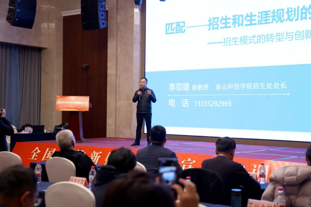 泰山科技学院招生处处长李双雄在研讨会上发表了题为《匹配——招生与生涯规划的终极目标》的主题报告。