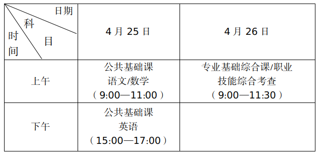 2.普通考生参加本表所列的公共基础课和专业基础综合课考试,退役大学生士兵参加本表所列的职业技能综合考查。