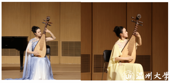 学业之外,她们积极投身艺术实践,两次参演温州大学思政大课并获表彰,还作为骨干参与温州市艺术基金项目——温州首部大型民族管弦乐《千年宋韵·海丝寻音》首演。入学以来,二人已参演校内外演出30余场,多次与专业学会合作,让琵琶艺术走近更多观众。