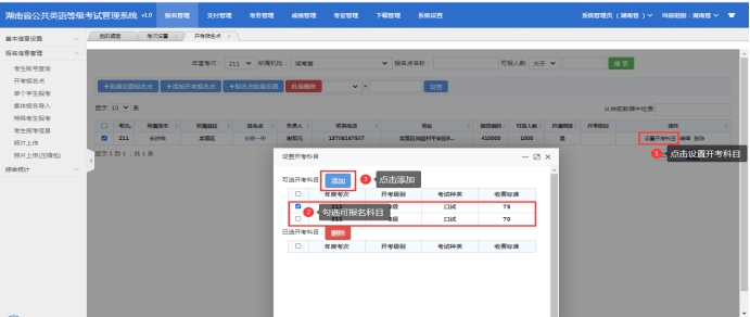 (2)点击批量设置报名点或者单个添加开考报名点