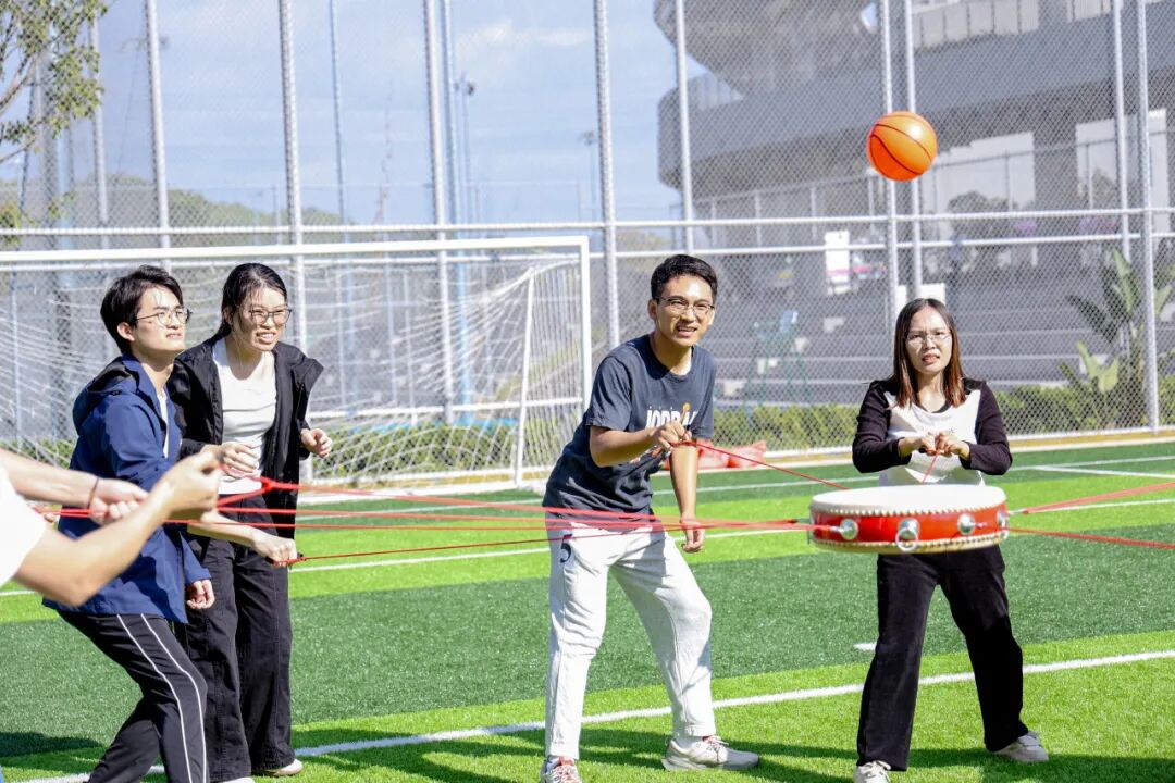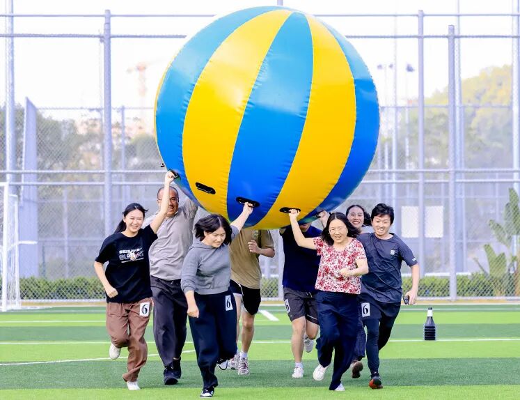 趣味赛场则充满了欢声笑语与智慧碰撞:“蛟龙出海”“同心鼓击球”考验着团队的协作与平衡;“流水线”巧妙地将学术期刊作为道具,传递乒乓球的同时也传递着科研的严谨与乐趣;“手忙脚乱”要求参赛者夹着论文、顶着水杯前进,平衡与沉稳缺一不可。这些设计巧妙的项目,不仅降低了参与门槛,更在趣味中深化了团队凝聚力,让“全民参与”落到了实处。