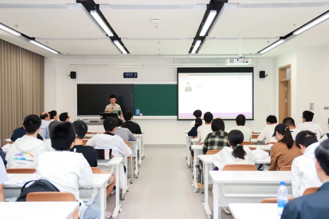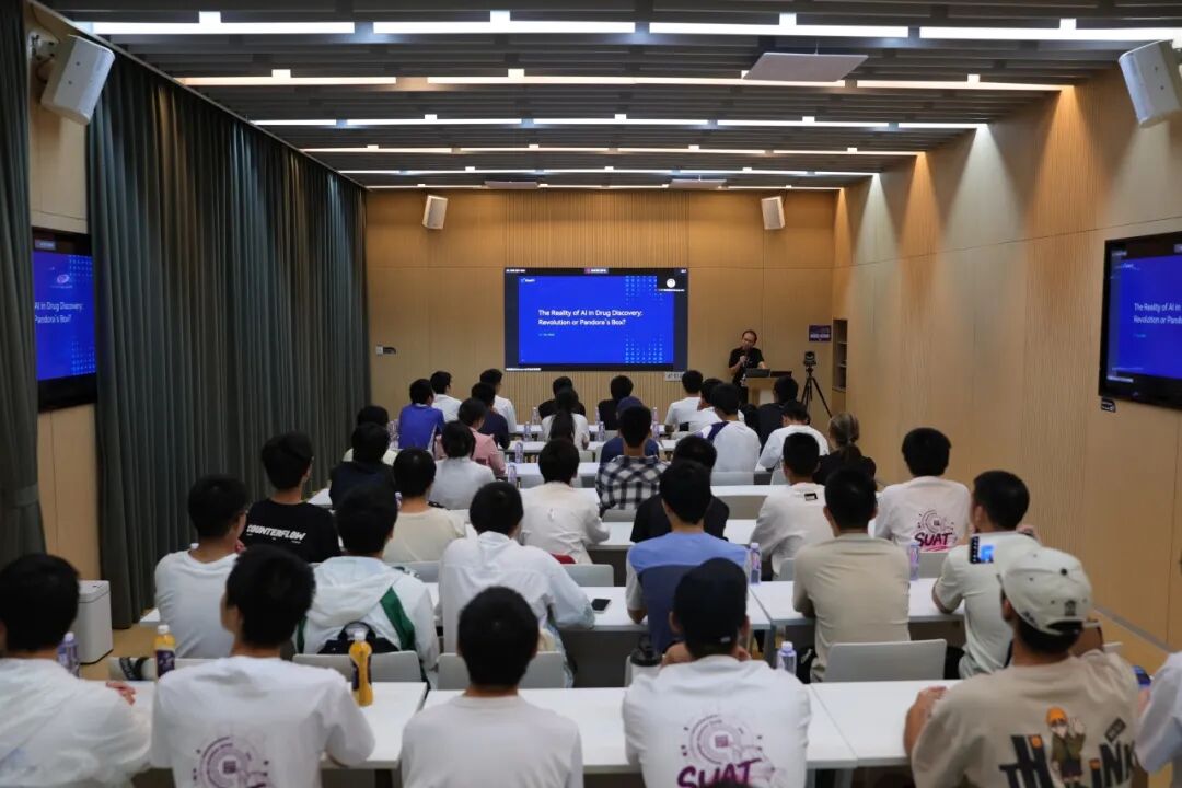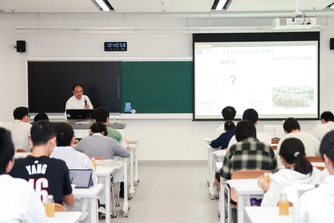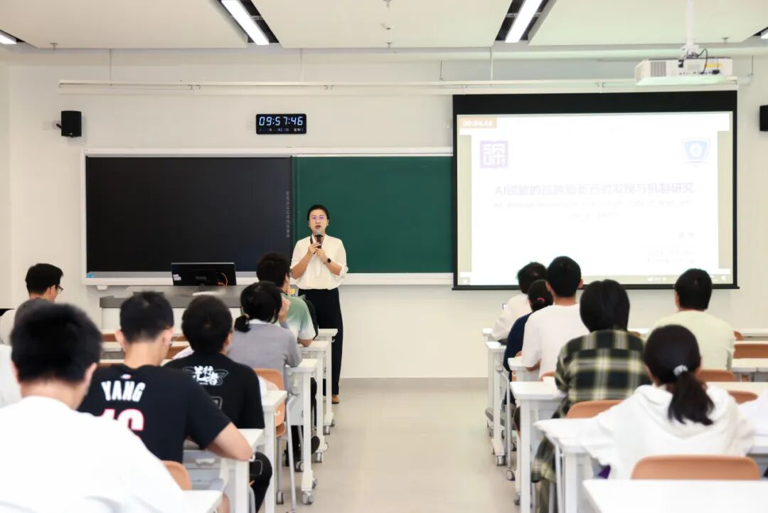 随后,晶泰科技人工智能药物研发负责人林志雄为同学们系统拆解了AI在药物发现领域的应用场景与技术突破,同时点赞深圳理工大学“4+1”教学模式的实践价值:“这种模式让学生在学习阶段就能精准对接产业真实需求,无论是对他们的学业提升、就业规划还是未来发展,都有着极大的帮助,期待同学们未来能为国家人工智能领域发展添砖加瓦。”