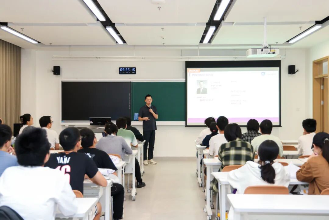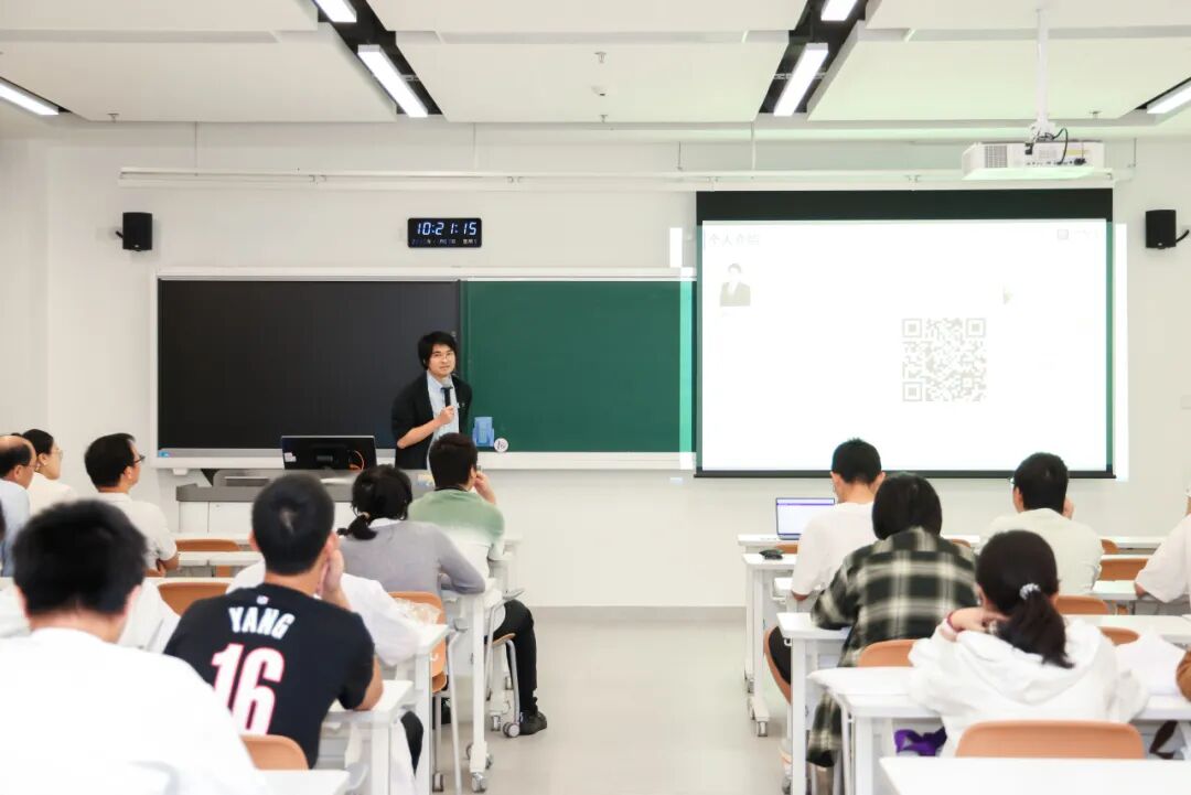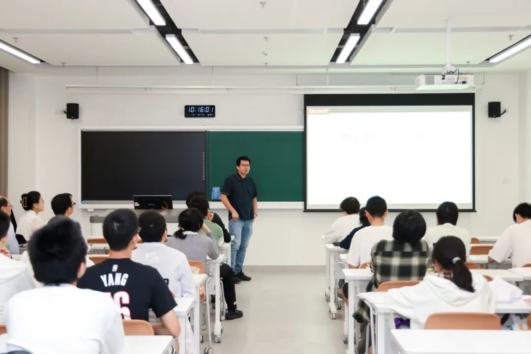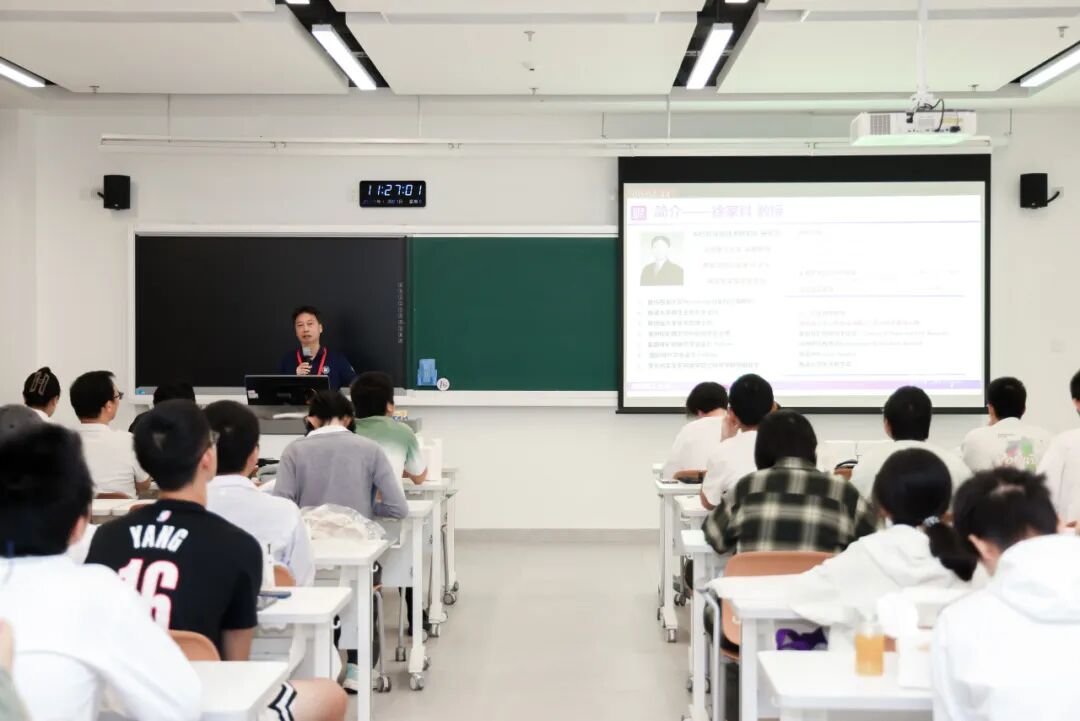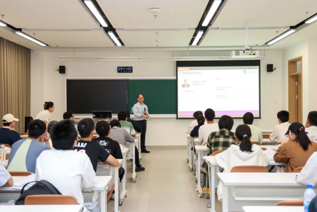 随后,晶泰科技人工智能药物研发负责人林志雄为同学们系统拆解了AI在药物发现领域的应用场景与技术突破,同时点赞深圳理工大学“4+1”教学模式的实践价值:“这种模式让学生在学习阶段就能精准对接产业真实需求,无论是对他们的学业提升、就业规划还是未来发展,都有着极大的帮助,期待同学们未来能为国家人工智能领域发展添砖加瓦。”