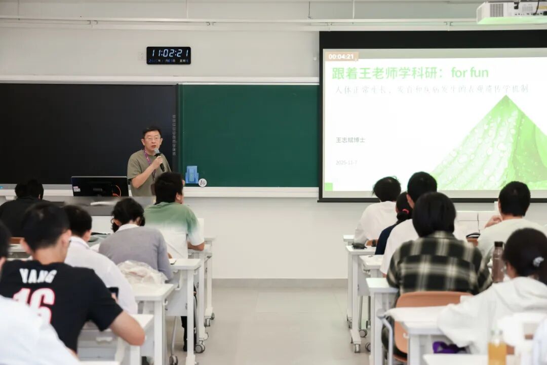 10月24日,深圳理工大学药学院副教授殷勤以《爱的魔力》为题,为同学们系统解析与爱意相关的生理学基础、愉悦情绪分子及作用机制,还分享了相关分子的改造思路与成药研究;牛天宇博士的《“神药”二甲双胍的前世今生》课程,通过梳理二甲双胍的发现历程与临床的应用场景,帮助同学们构建起药物研发与应用的系统认知。
