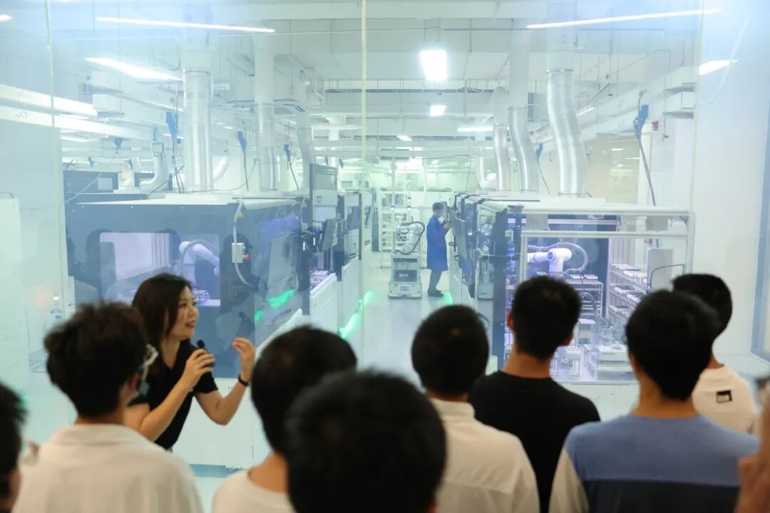 同学们近距离观摩了高度集成的机器人工作站,其中“黑灯实验室”的高效运作让大家直呼震撼:机械臂精准移液、自动反应器高效合成、智能系统实时调度等全流程无人干预的自动化场景,生动诠释了科技对药物研发底层逻辑的重塑,让课本中的“AI辅助药物研发”,化作看得见的产业实景。