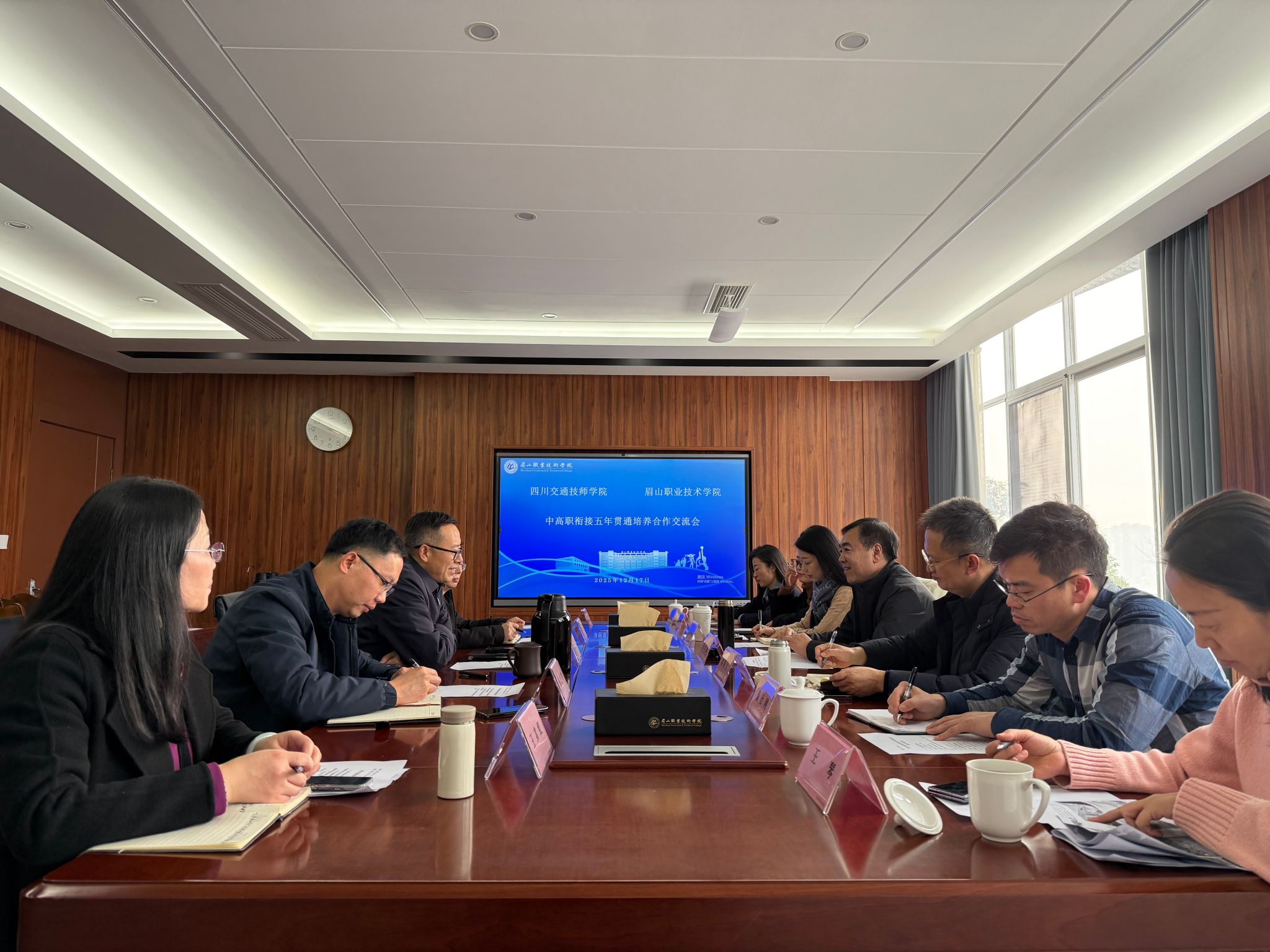 随后,四川交通技师学院院长、党委副书记付传龙详细介绍了该校的办学特色、专业布局、实训基地建设及中高职衔接工作的现有基础。他指出,四川交通技师学院在汽车工程、交通运输、机电工程等领域积累了丰富的教学经验和行业资源,希望通过此次交流,与眉山职业技术学院在2026年五年贯通培养项目的专业设置、课程衔接、教学标准制定等关键环节达成共识,共同培养适应产业发展的高素质技术技能人才。