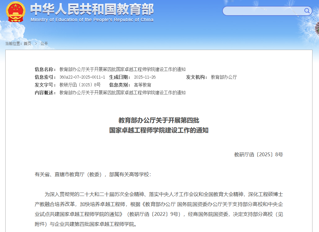 当下,国家正大力推进科技自立自强、建设制造强国,卓越工程人才成为支撑发展的核心力量,而国家卓越工程师学院正是培养这类顶尖人才的核心平台。对于面临升学选择、怀揣工程梦想的高中生来说,了解优质的工程人才培养院校,将为未来职业发展锚定清晰方向。2025年12月19日,教育部公布第四批“国家卓越工程师学院建设高校”名单,将建设高校扩容至42所。