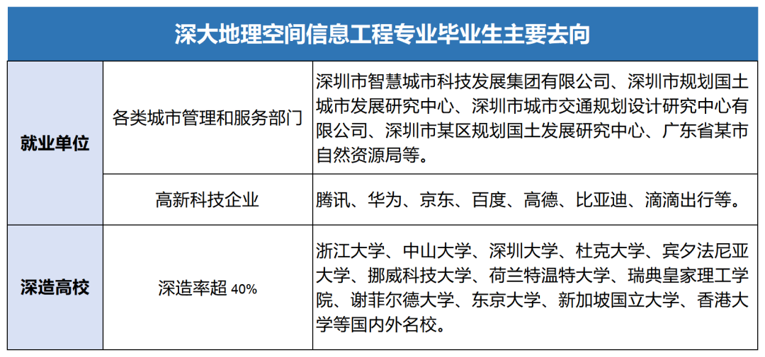瞄准这一蓝海赛道,深大地理空间信息工程(智慧城市)专业凭借粤港澳大湾区的地域优势和一流的专业实力,为地理空间信息人才提供了大量的工作机会和无限发展可能。