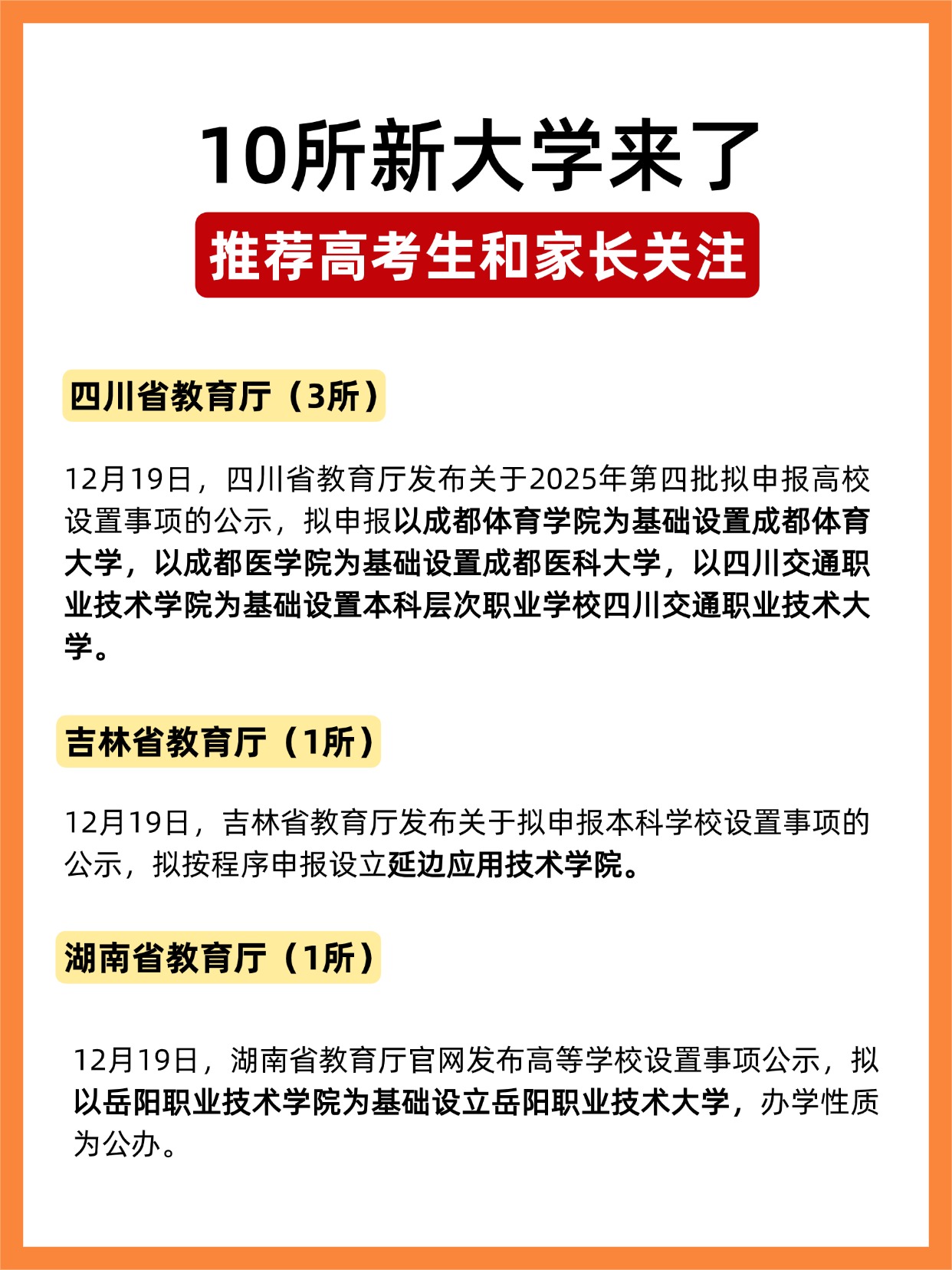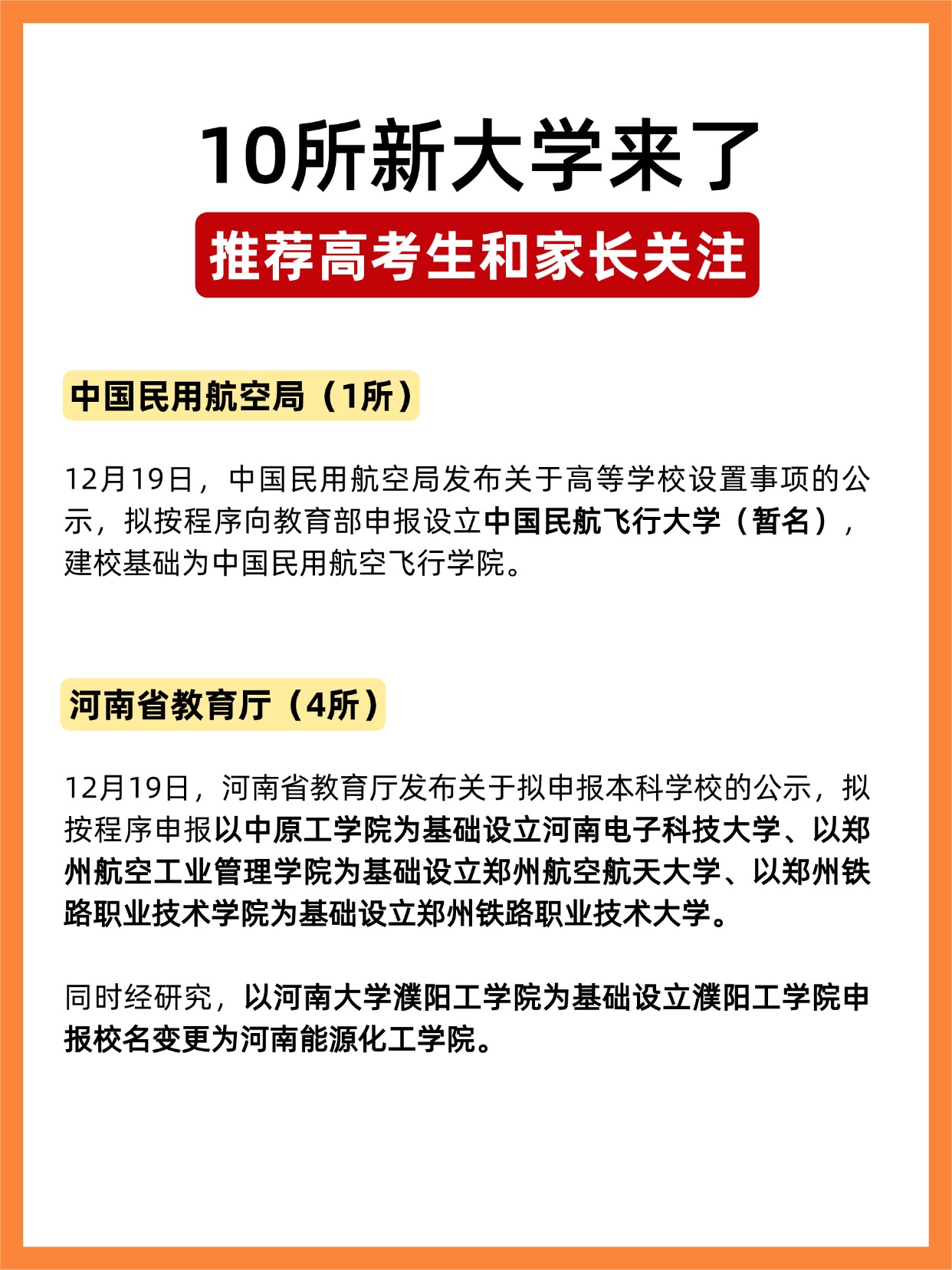 12月19日,中国民用航空局及河南、四川、吉林、湖南省教育厅集中公示拟(申报)设立“新大学”,共涉及10所高校,对于高考生而言,这也是值得关注的择校新选择。一起了解!