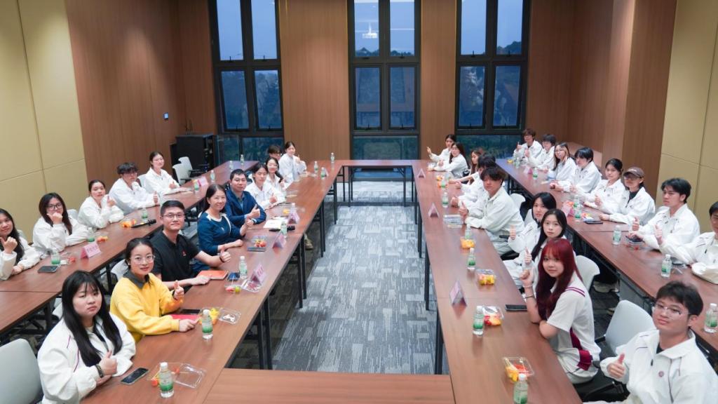 参观结束后,温馨而热烈的座谈交流环节随即开启,座谈会由谢锦权主持。他提到,“我与校长有约”是学校倾听学生心声、凝聚发展共识的重要平台,本次座谈活动主题是“匠心筑梦,共创未来”,希望与会同学踊跃发言,为促进成长与学校发展建言献策。