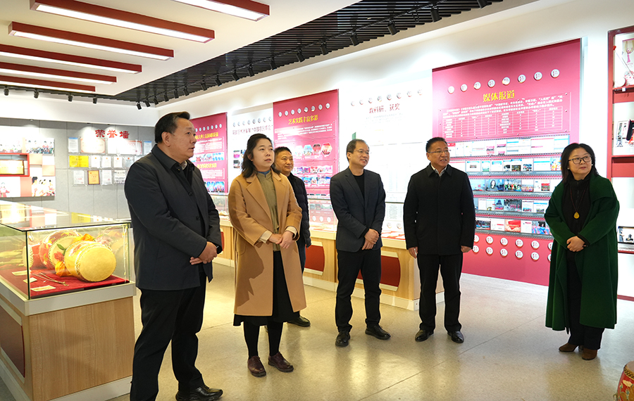 调研组实地考察凤阳花鼓传承教学场地,参观了凤阳花鼓艺术馆,听取凤阳花鼓人才培养、课程建设、学术研究、创新实践与社会传播等方面工作汇报,观看了学生展示的凤阳花鼓经典曲目与创新编排片段。