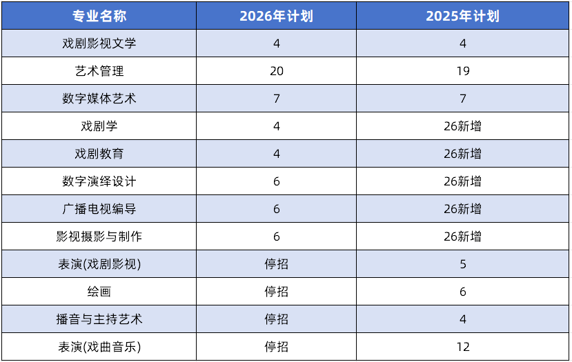 从招生计划总量来看,上戏2025年与2026年春考招生计划均为57名,总量保持稳定,这意味着整体招生规模未发生收缩,给考生的报考机会总量基本持平。但值得注意的是,计划总量的稳定背后,是专业层面的大幅重构,不同专业的招生名额分配出现了明显调整,直接影响考生的报考选择空间。