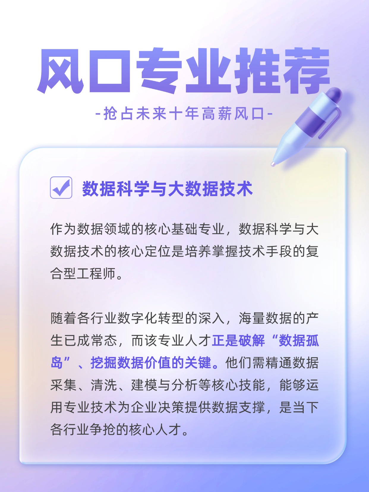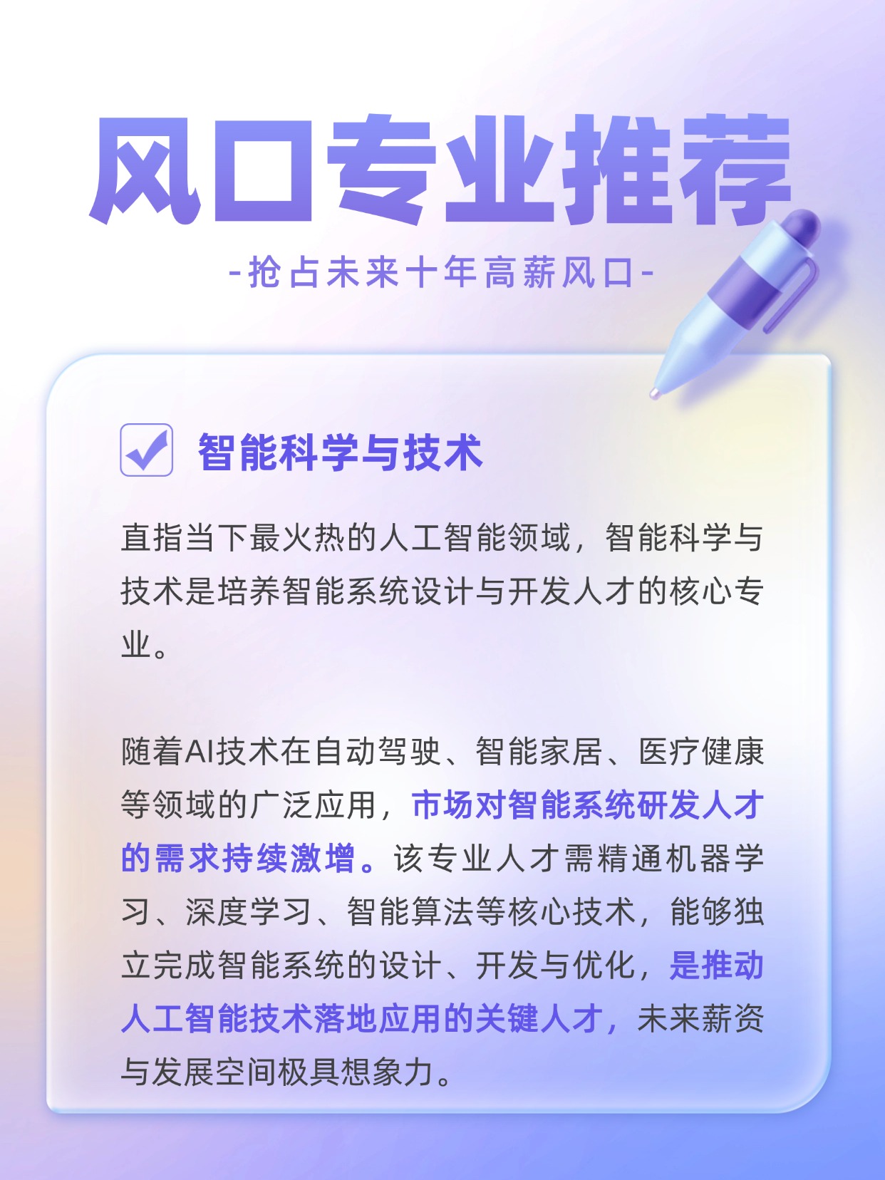 国家正在重点培养一批高潜力专业,紧跟人工智能与数字经济发展大势,既符合战略需求,又自带高薪光环。这些聚焦数字科技与交叉领域的新方向,才是真正押中未来的聪明选择!你准备好抓住了吗?