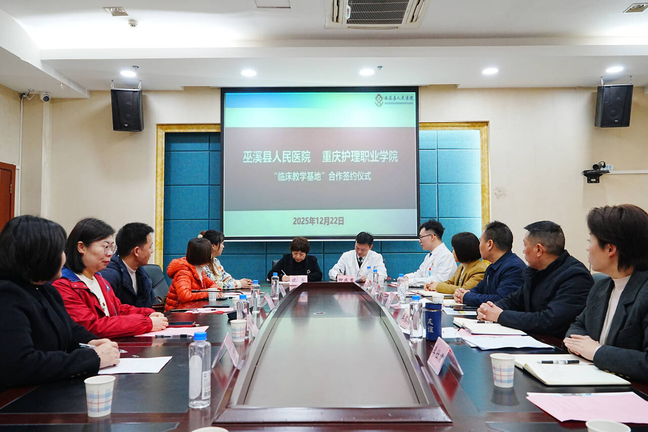 2025年12月22日,我校校长沈军率队前往巫溪县人民医院开展调研,实地考察了医院康复医学科的临床教学区与技能培训中心,详细了解教学设施、实训环境及学生生活保障条件。